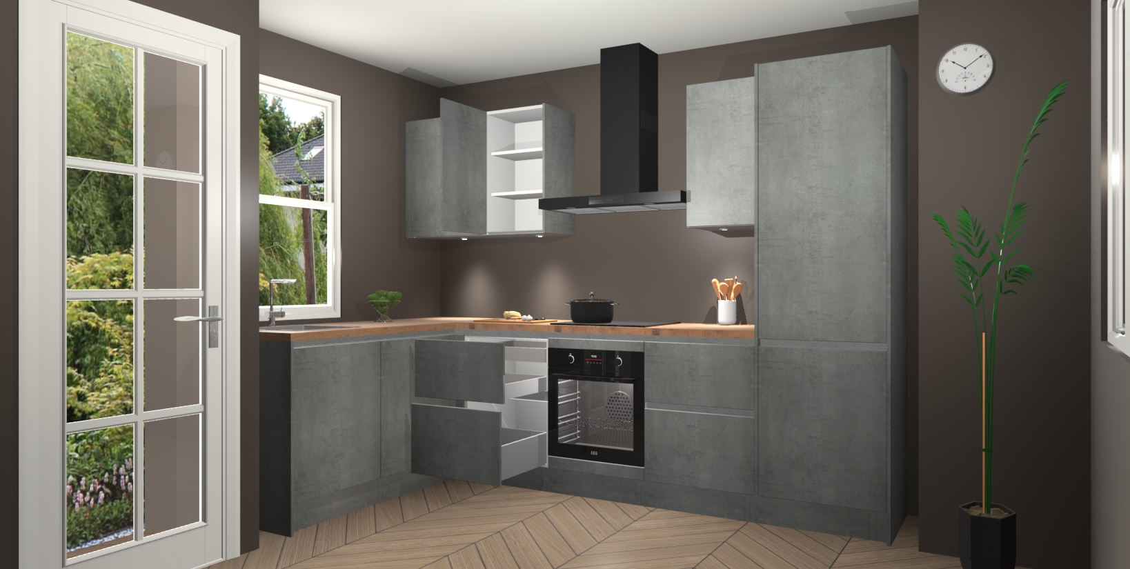 Bent u op zoek naar een strakke, moderne hoekkeuken die uw huis oppept en een moderne uitstraling geeft? Kijk dan niet verder dan de beton parelgrijs greeploze keuken Beijing. Deze verbluffende hoekkeuken tilt hedendaags design naar een hoger niveau. Qua stijl is deze chique hoekkeuken voorzien van beton parelgrijs accenten, om een strakke maar opvallende look te creëren. De binnenkant van de kasten is afgewerkt in dezelfde prachtige beton parelgrijs kleur voor extra esthetische aantrekkingskracht.