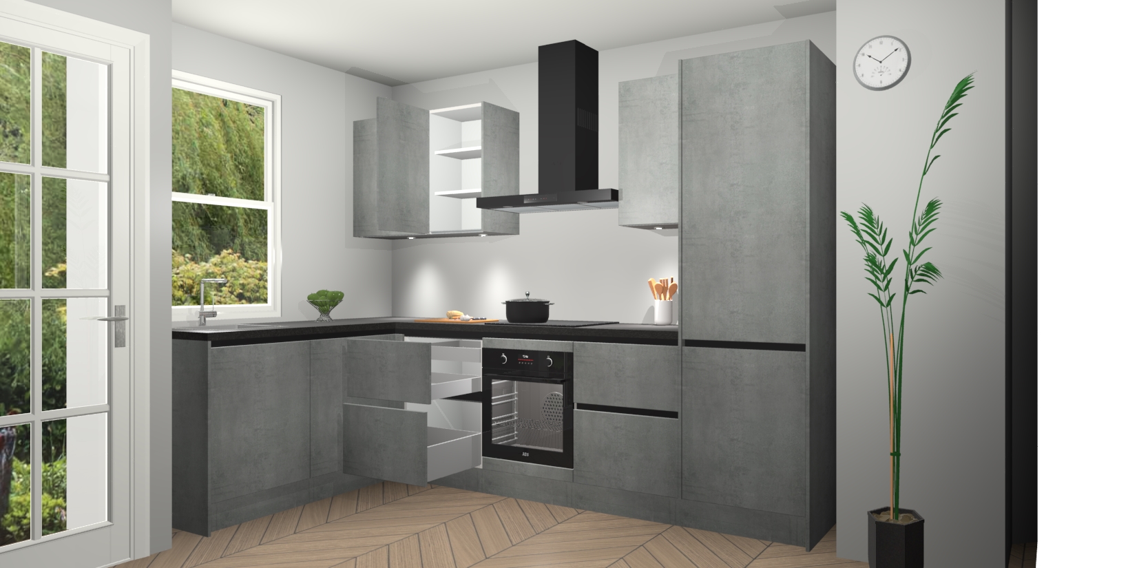 Bent u op zoek naar een strakke, moderne hoekkeuken die uw huis oppept en een moderne uitstraling geeft? Kijk dan niet verder dan de beton parelgrijs greeploze keuken Beijing. Deze verbluffende hoekkeuken tilt hedendaags design naar een hoger niveau. Qua stijl is deze chique hoekkeuken voorzien van beton parelgrijs accenten, om een strakke maar opvallende look te creëren. De binnenkant van de kasten is afgewerkt in dezelfde prachtige beton parelgrijs kleur voor extra esthetische aantrekkingskracht.