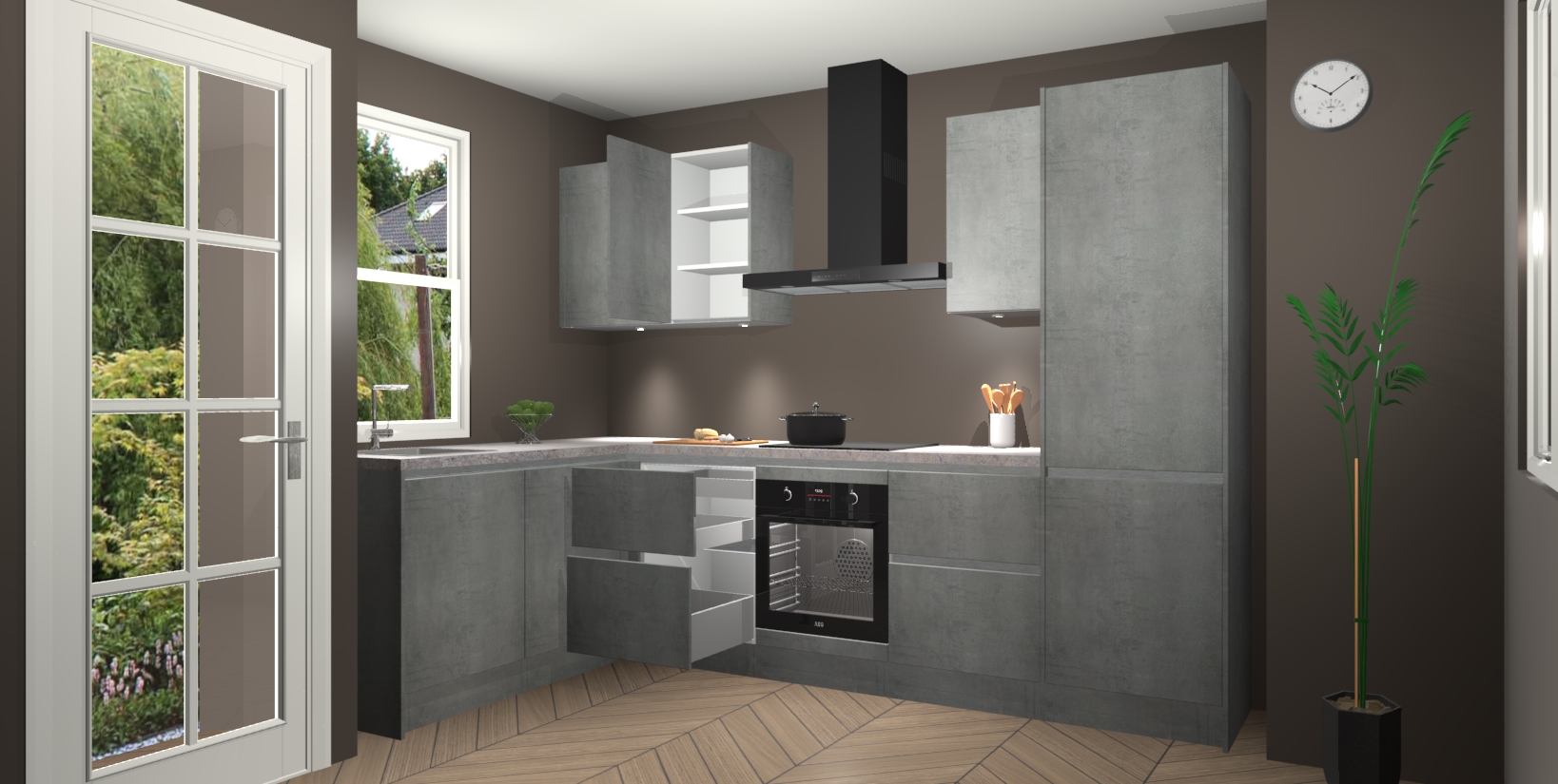 Bent u op zoek naar een strakke, moderne hoekkeuken die uw huis oppept en een moderne uitstraling geeft? Kijk dan niet verder dan de beton parelgrijs greeploze keuken Beijing. Deze verbluffende hoekkeuken tilt hedendaags design naar een hoger niveau. Qua stijl is deze chique hoekkeuken voorzien van beton parelgrijs accenten, om een strakke maar opvallende look te creëren. De binnenkant van de kasten is afgewerkt in dezelfde prachtige beton parelgrijs kleur voor extra esthetische aantrekkingskracht.