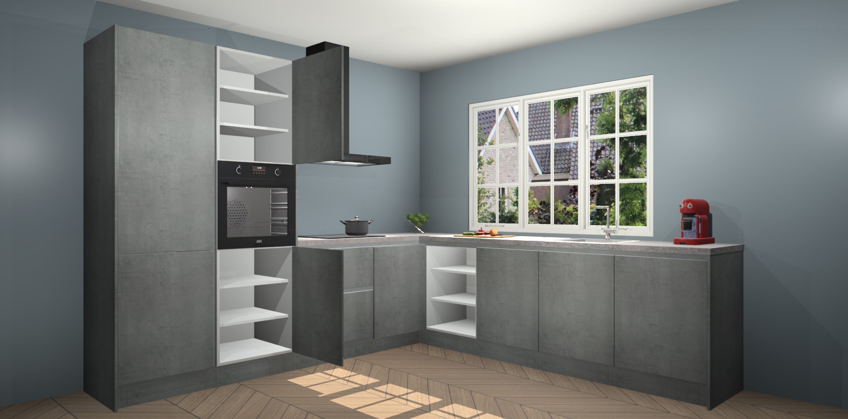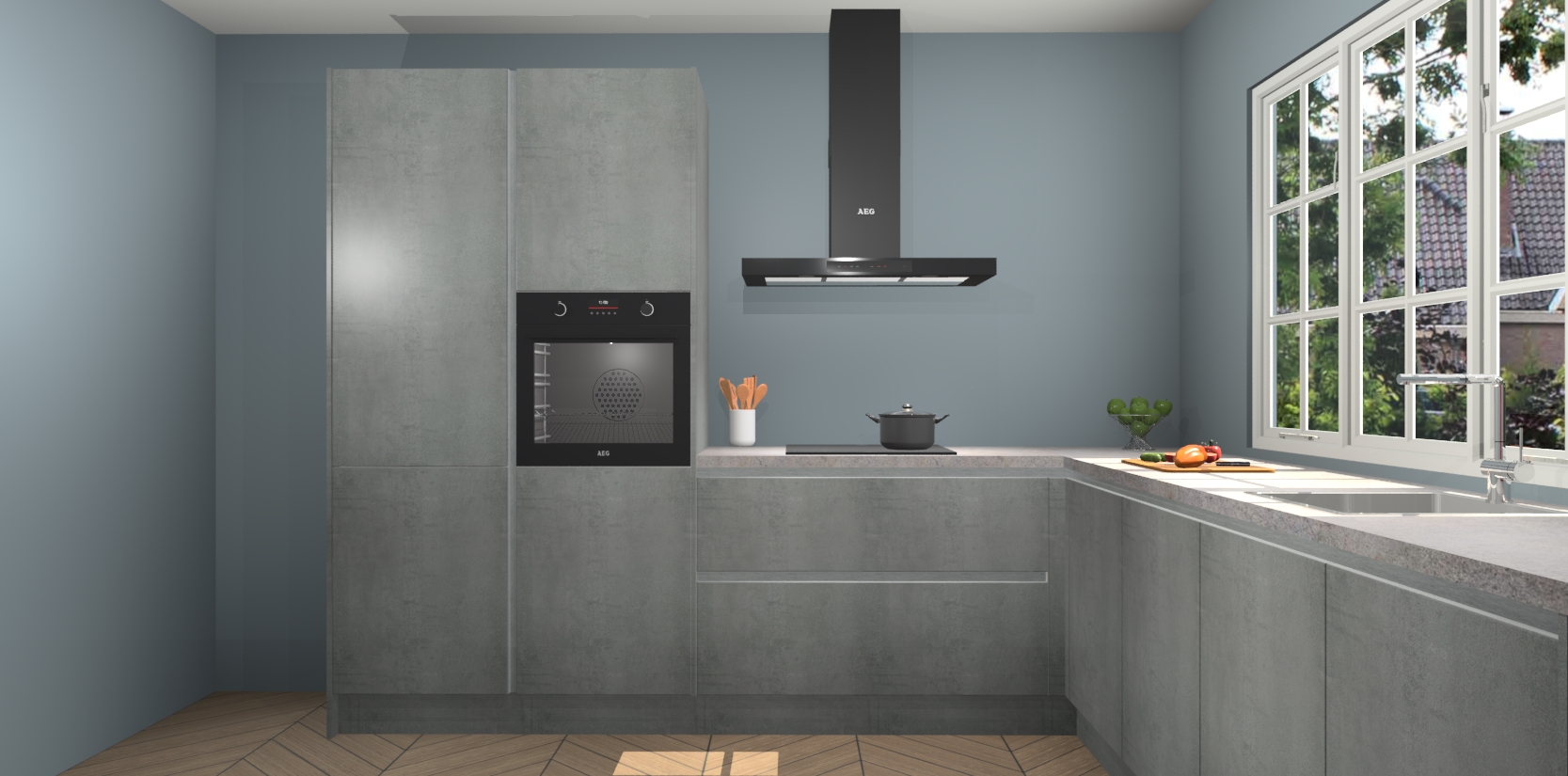 De keuken heeft veel opbergruimte, waardoor u alle ingrediënten gemakkelijk bereikbaar hebt staan. En daarnaast bevat deze volledig uitgeruste keuken ook 5 ingebouwde apparaten: een oven, inductiekookplaat, afzuigkap, vaatwasser en koelkast. Deze zijn heel eenvoudig na bestellen te upgraden naar AEG als u dit wilt. Bovendien zijn de softclose-kastdeuren ideaal; geef ze gewoon even een tikje en ze sluiten automatisch met geruisloze precisie.
