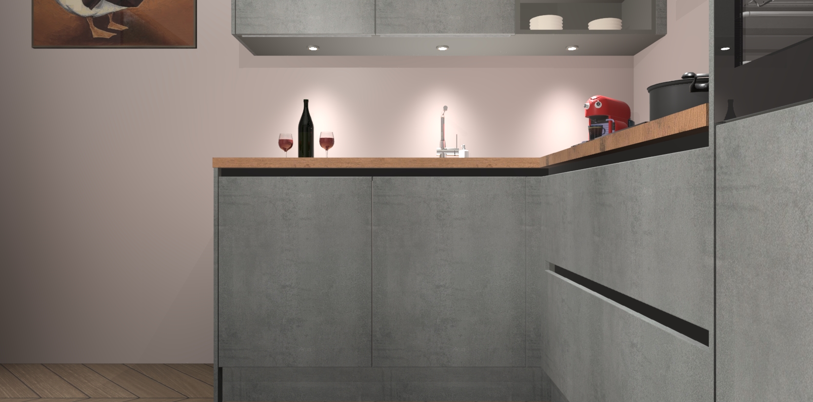 De Beton Parelgrijs greeploze keuken Cognac gaat alleen maar om de beste keukenervaring. Kies gewoon de beste apparatuur en ongeëvenaarde Duitse constructie die u thuis wilt hebben en verander uw huiskamer hartelijkheid meteen in professionaliteit. Laat de toon weten dat u gemakkelijk kan genieten van alle luxe die u verdiend? Bestel nu de Beton Parelgrijs greeploze keuken Cognac voor bij u thuis!