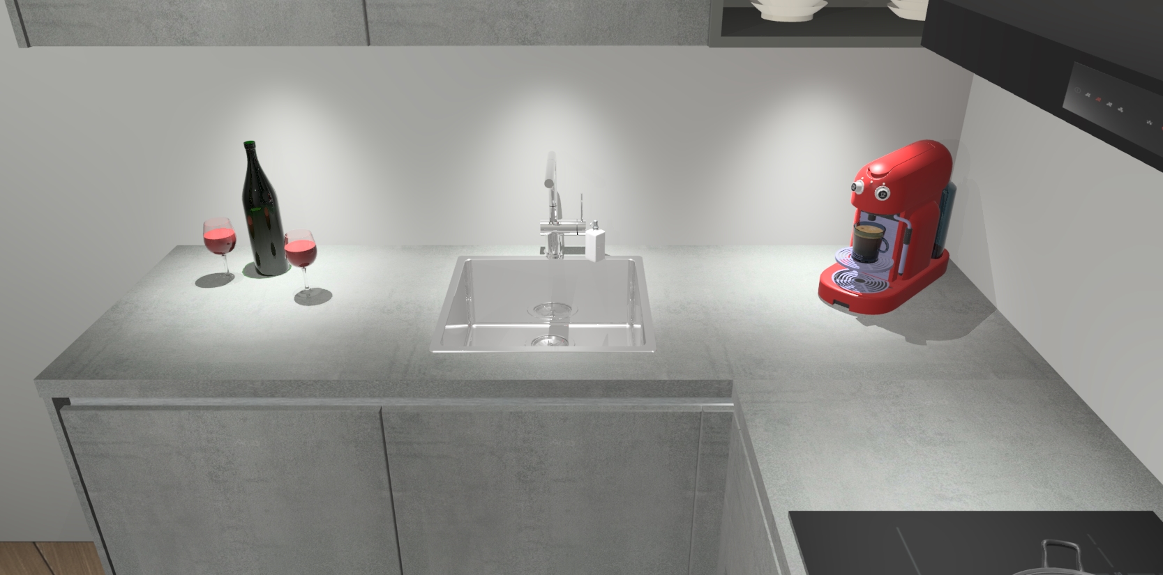 - Bij een hoekwerkblad zijn de hoeken in gevreesd en op maat gemaakt