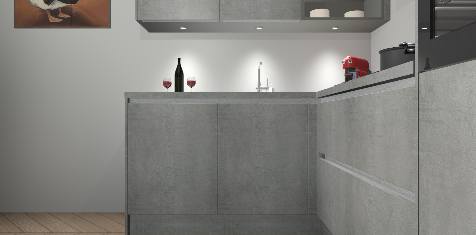 De Beton Parelgrijs greeploze keuken Cognac gaat alleen maar om de beste keukenervaring. Kies gewoon de beste apparatuur en ongeëvenaarde Duitse constructie die u thuis wilt hebben en verander uw huiskamer hartelijkheid meteen in professionaliteit. Laat de toon weten dat u gemakkelijk kan genieten van alle luxe die u verdiend? Bestel nu de Beton Parelgrijs greeploze keuken Cognac voor bij u thuis!