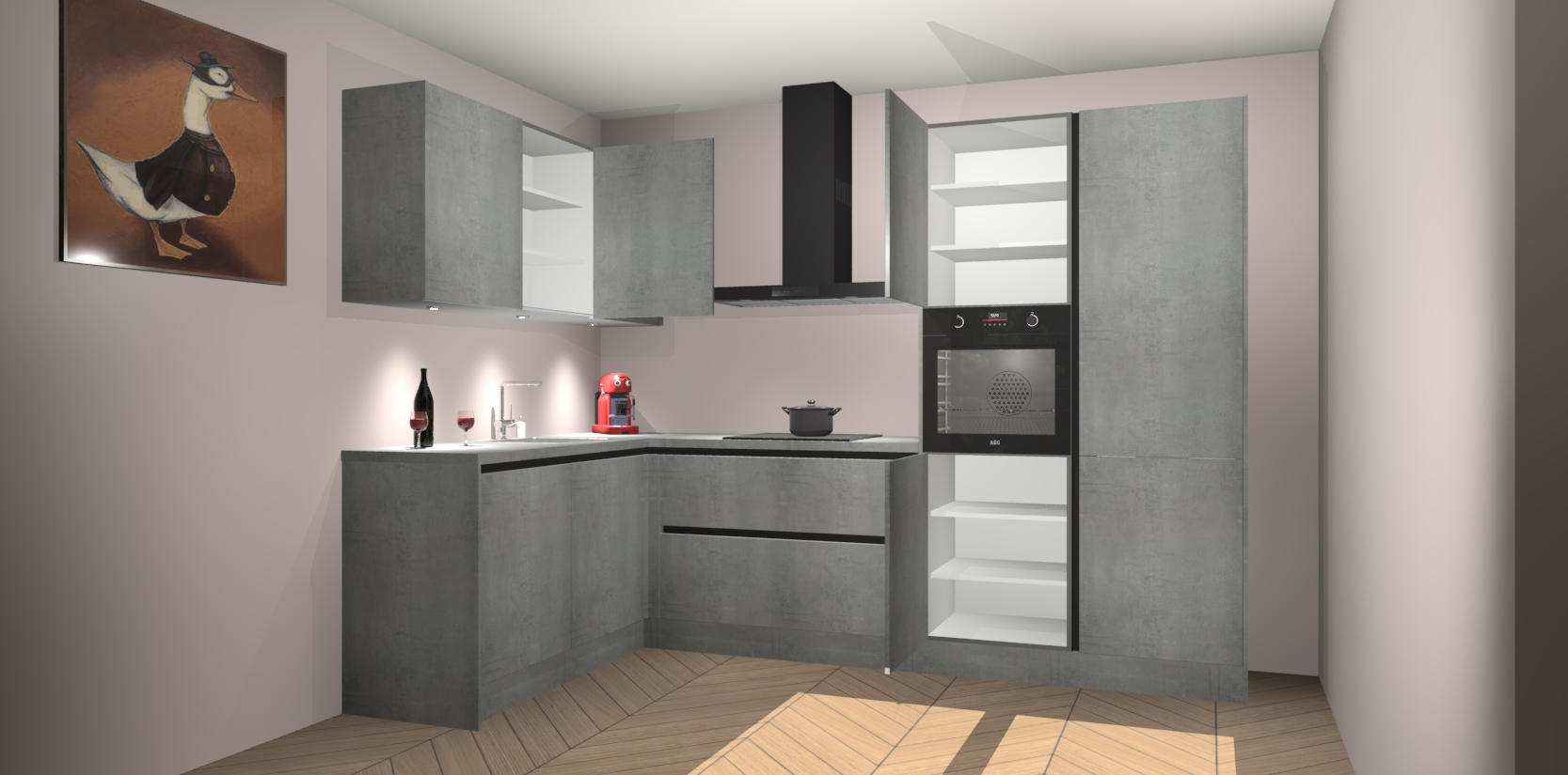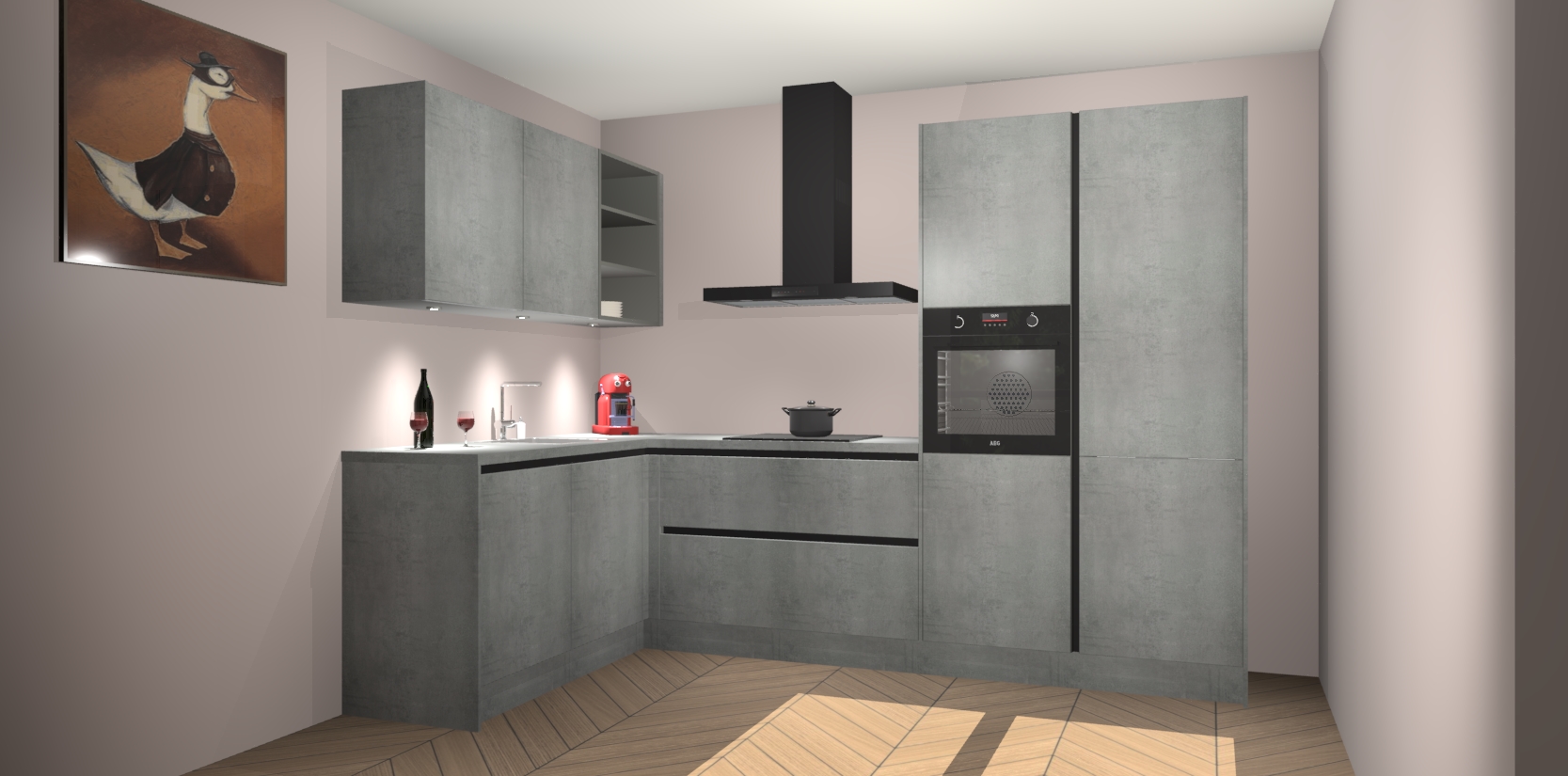 De Beton Parelgrijs greeploze keuken Cognac gaat alleen maar om de beste keukenervaring. Kies gewoon de beste apparatuur en ongeëvenaarde Duitse constructie die u thuis wilt hebben en verander uw huiskamer hartelijkheid meteen in professionaliteit. Laat de toon weten dat u gemakkelijk kan genieten van alle luxe die u verdiend? Bestel nu de Beton Parelgrijs greeploze keuken Cognac voor bij u thuis!