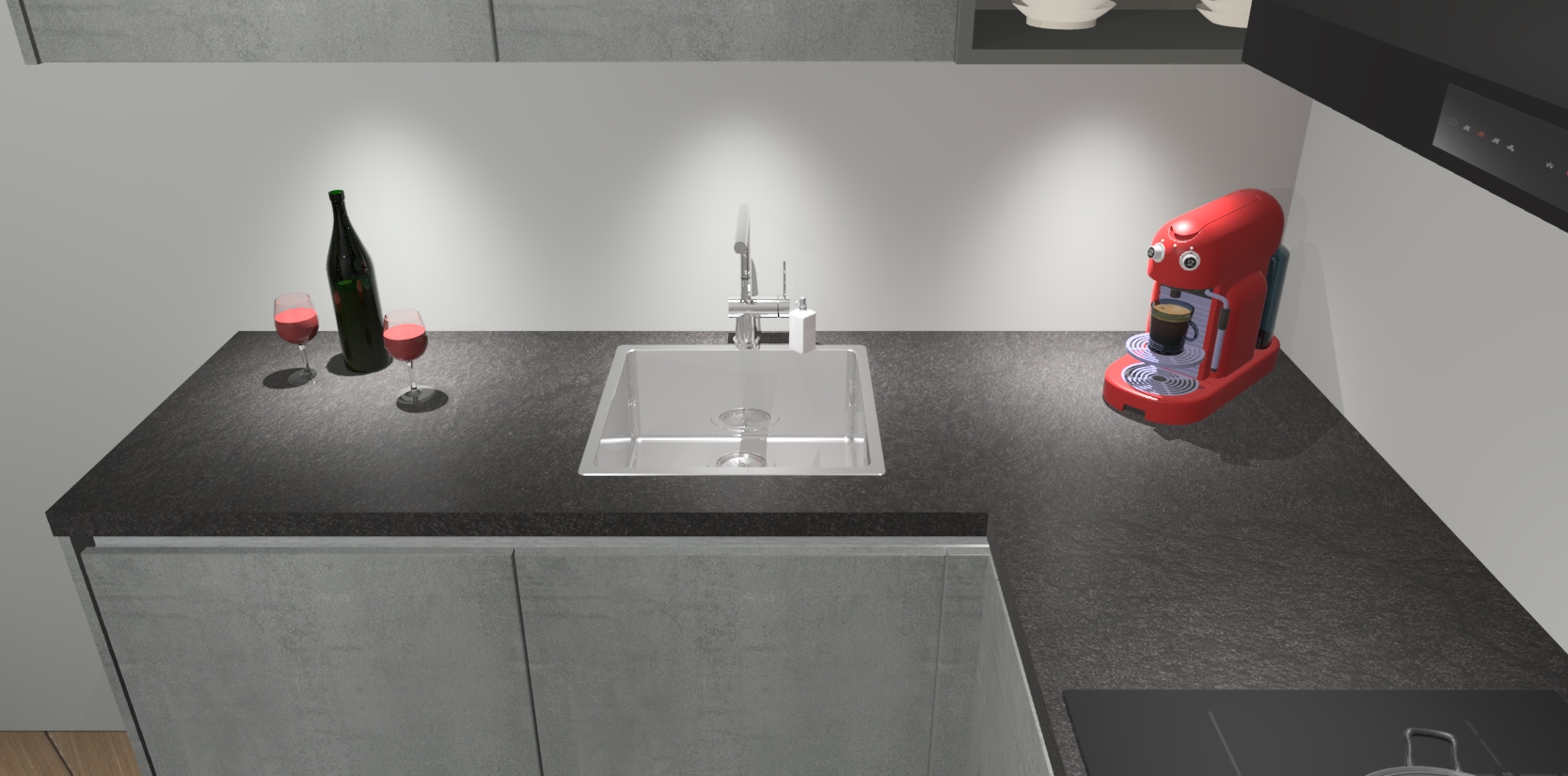 - Bij een hoekwerkblad zijn de hoeken in gevreesd en op maat gemaakt
