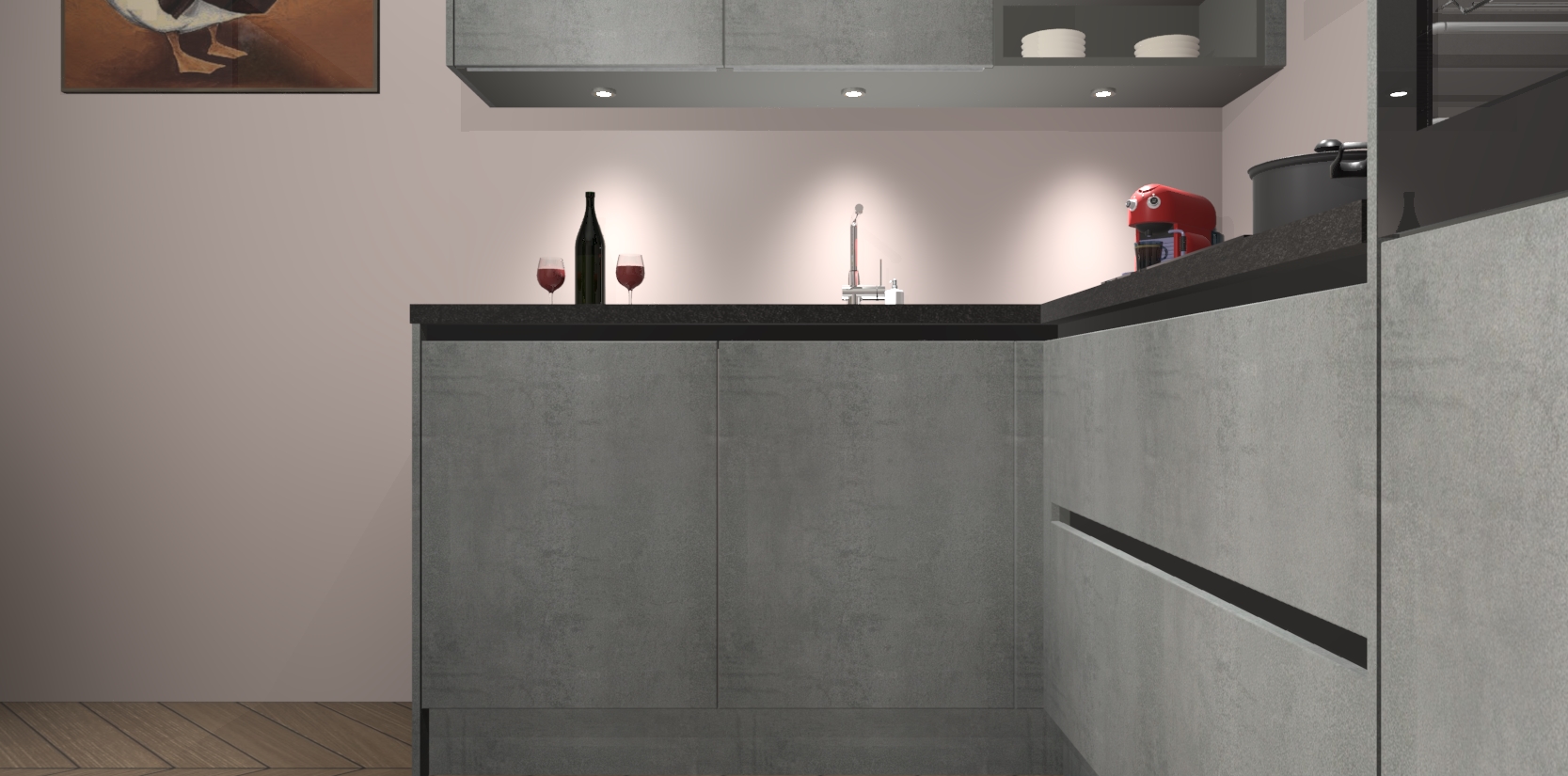 De Beton Parelgrijs greeploze keuken Cognac gaat alleen maar om de beste keukenervaring. Kies gewoon de beste apparatuur en ongeëvenaarde Duitse constructie die u thuis wilt hebben en verander uw huiskamer hartelijkheid meteen in professionaliteit. Laat de toon weten dat u gemakkelijk kan genieten van alle luxe die u verdiend? Bestel nu de Beton Parelgrijs greeploze keuken Cognac voor bij u thuis!
