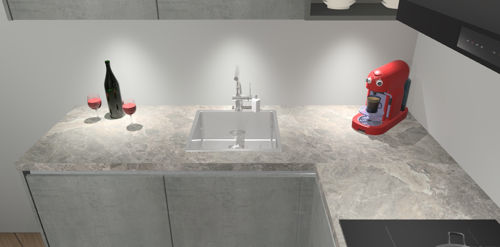- Bij een hoekwerkblad zijn de hoeken in gevreesd en op maat gemaakt
