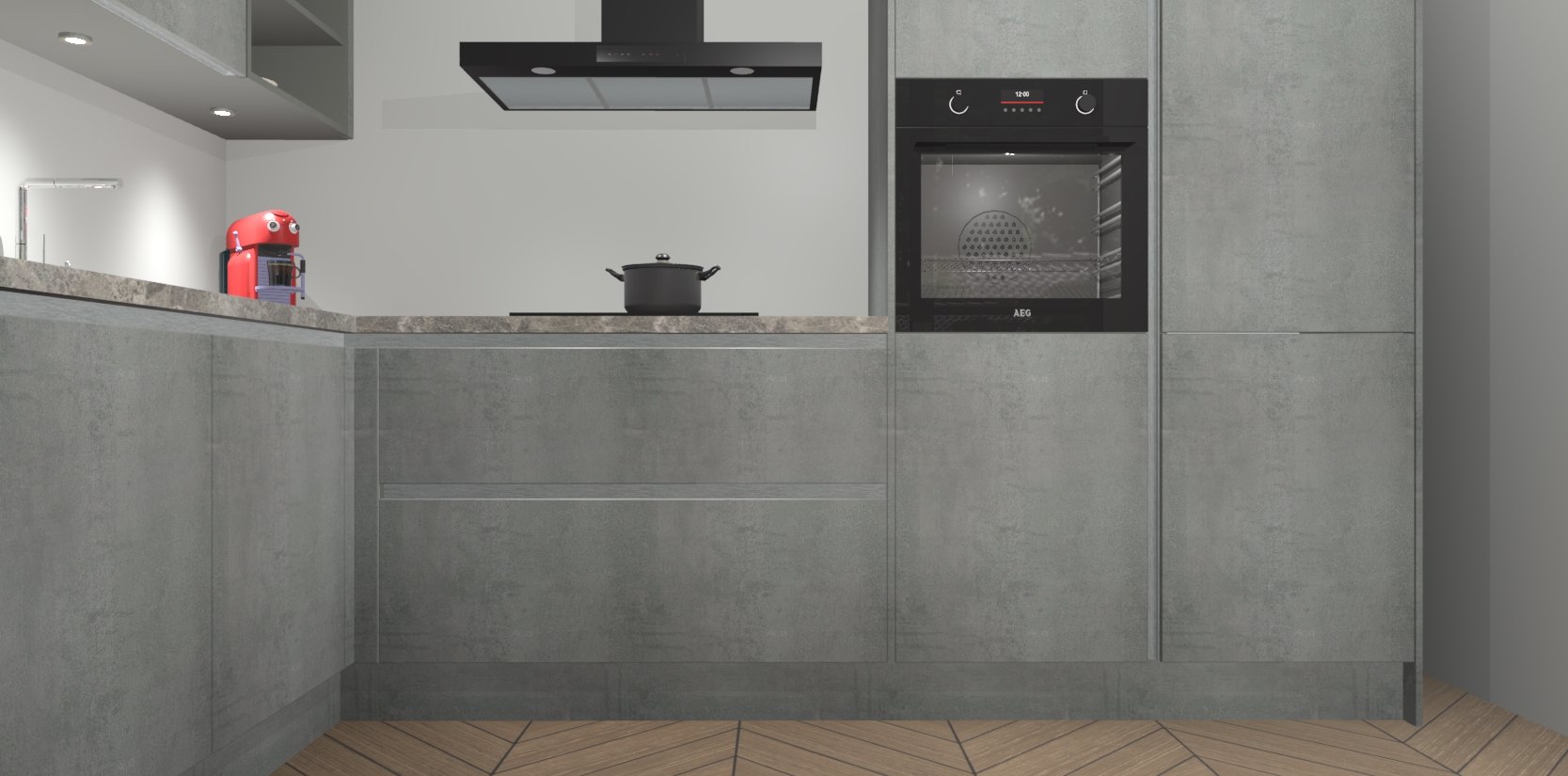 De Beton Parelgrijs greeploze keuken Cognac is een adembenemend ontwerp met een modern en tijdloos uiterlijk. Deze luxe keuken straalt echt aristocratisch uit, waardoor uw koken plezieriger zal worden! Het prachtige design begint bij de hoekkeuken, wat perfect past bij elk type interieur. Bovendien bevat deze hoogwaardige set vijf inbouwapparaten - van oven tot koelkast - die via bestelling naar AEG geüpgraded kunnen worden!