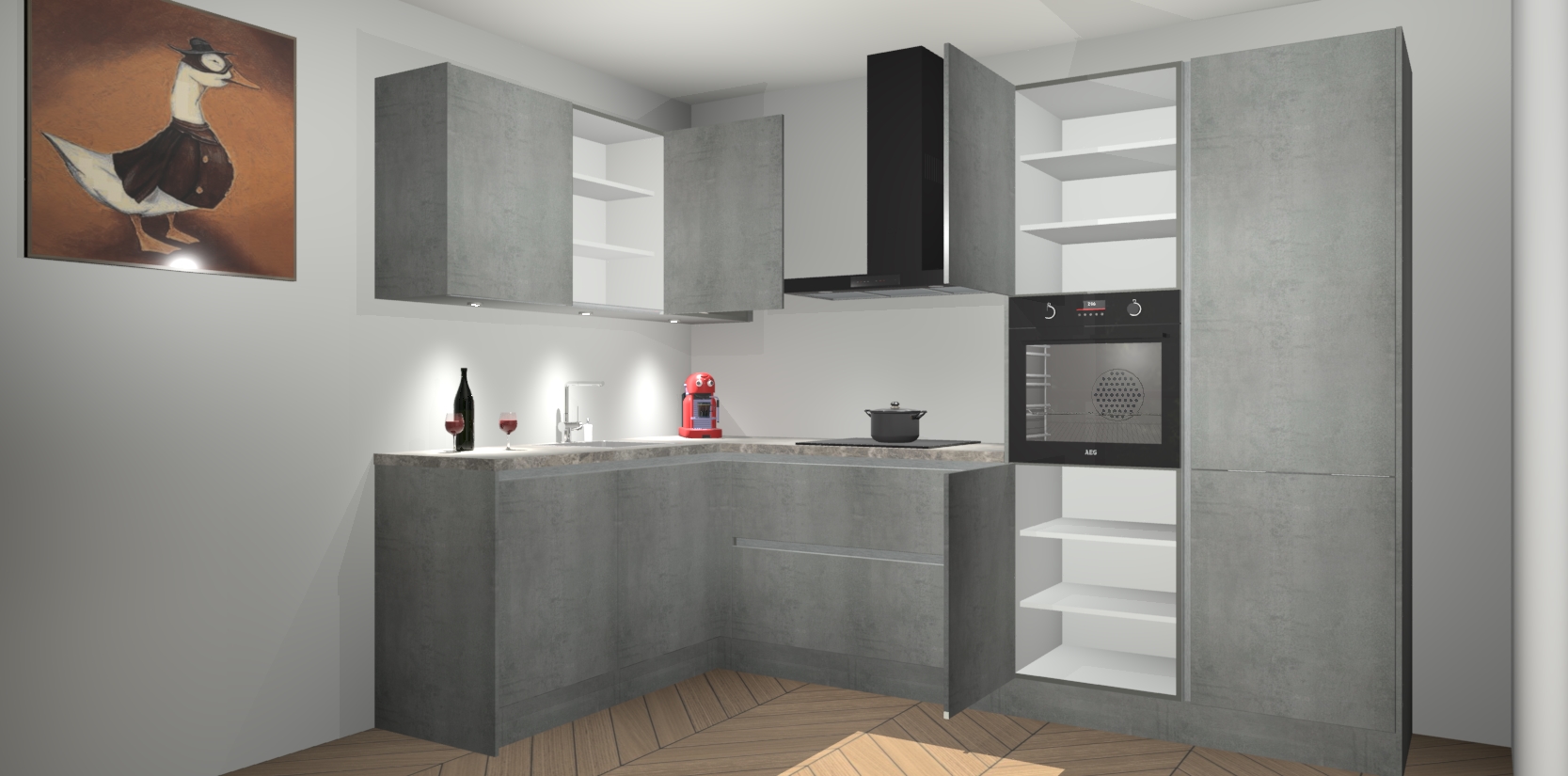 De Beton Parelgrijs greeploze keuken Cognac gaat alleen maar om de beste keukenervaring. Kies gewoon de beste apparatuur en ongeëvenaarde Duitse constructie die u thuis wilt hebben en verander uw huiskamer hartelijkheid meteen in professionaliteit. Laat de toon weten dat u gemakkelijk kan genieten van alle luxe die u verdiend? Bestel nu de Beton Parelgrijs greeploze keuken Cognac voor bij u thuis!