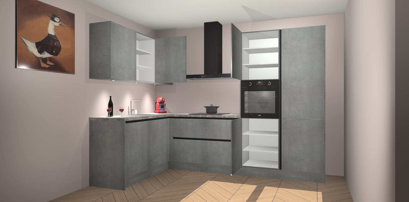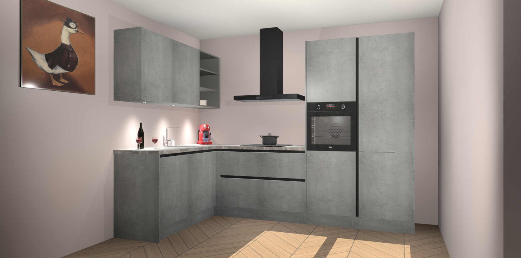 De Beton Parelgrijs greeploze keuken Cognac gaat alleen maar om de beste keukenervaring. Kies gewoon de beste apparatuur en ongeëvenaarde Duitse constructie die u thuis wilt hebben en verander uw huiskamer hartelijkheid meteen in professionaliteit. Laat de toon weten dat u gemakkelijk kan genieten van alle luxe die u verdiend? Bestel nu de Beton Parelgrijs greeploze keuken Cognac voor bij u thuis!