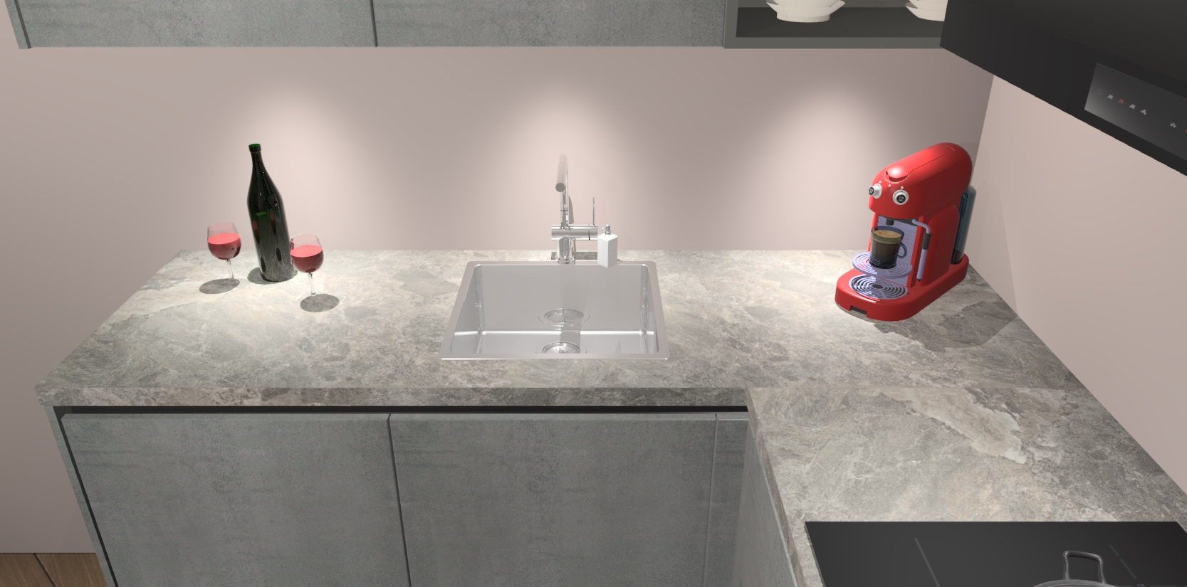 - Bij een hoekwerkblad zijn de hoeken in gevreesd en op maat gemaakt