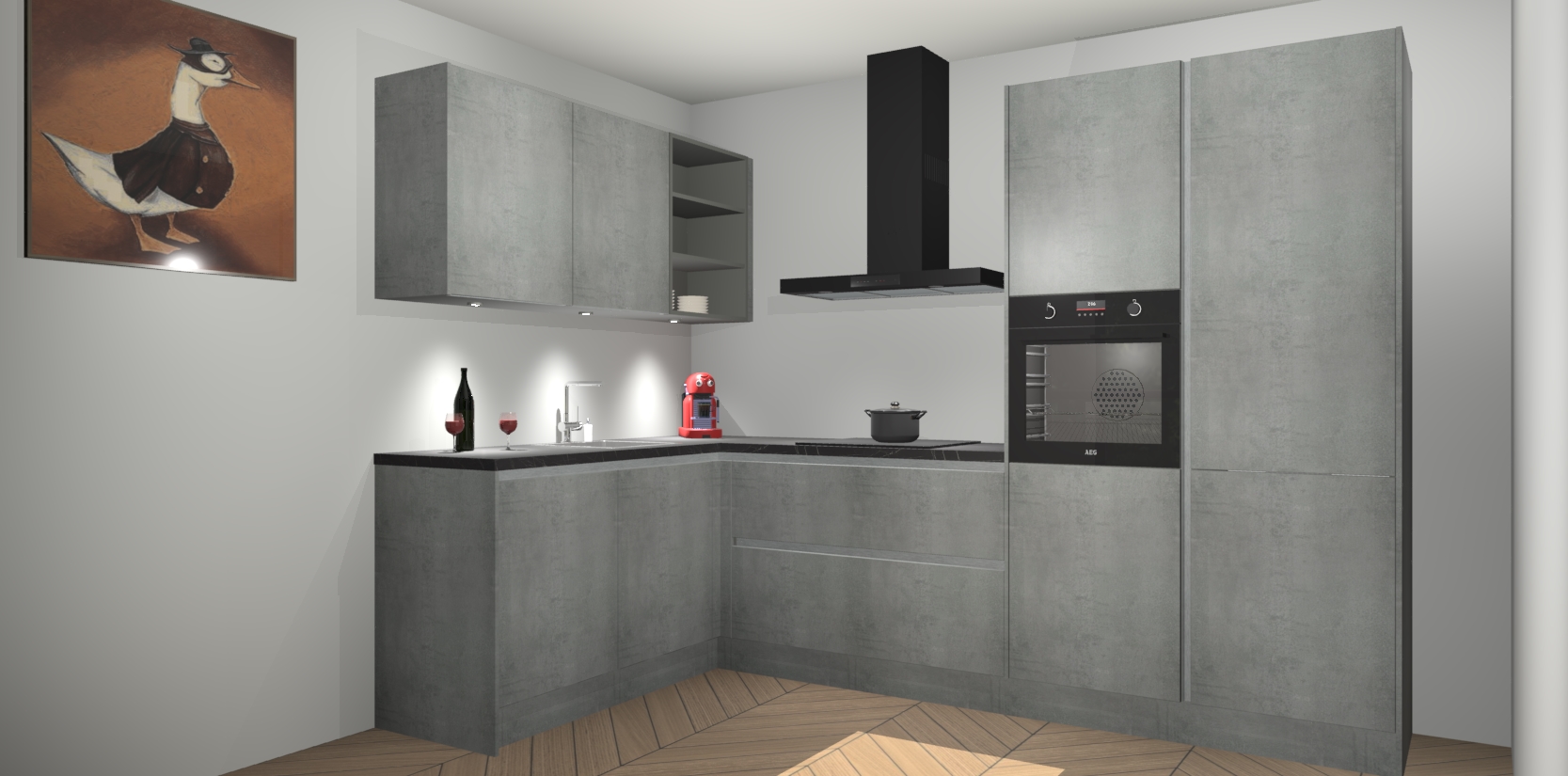 De Beton Parelgrijs greeploze keuken Cognac is een adembenemend ontwerp met een modern en tijdloos uiterlijk. Deze luxe keuken straalt echt aristocratisch uit, waardoor uw koken plezieriger zal worden! Het prachtige design begint bij de hoekkeuken, wat perfect past bij elk type interieur. Bovendien bevat deze hoogwaardige set vijf inbouwapparaten - van oven tot koelkast - die via bestelling naar AEG geüpgraded kunnen worden!