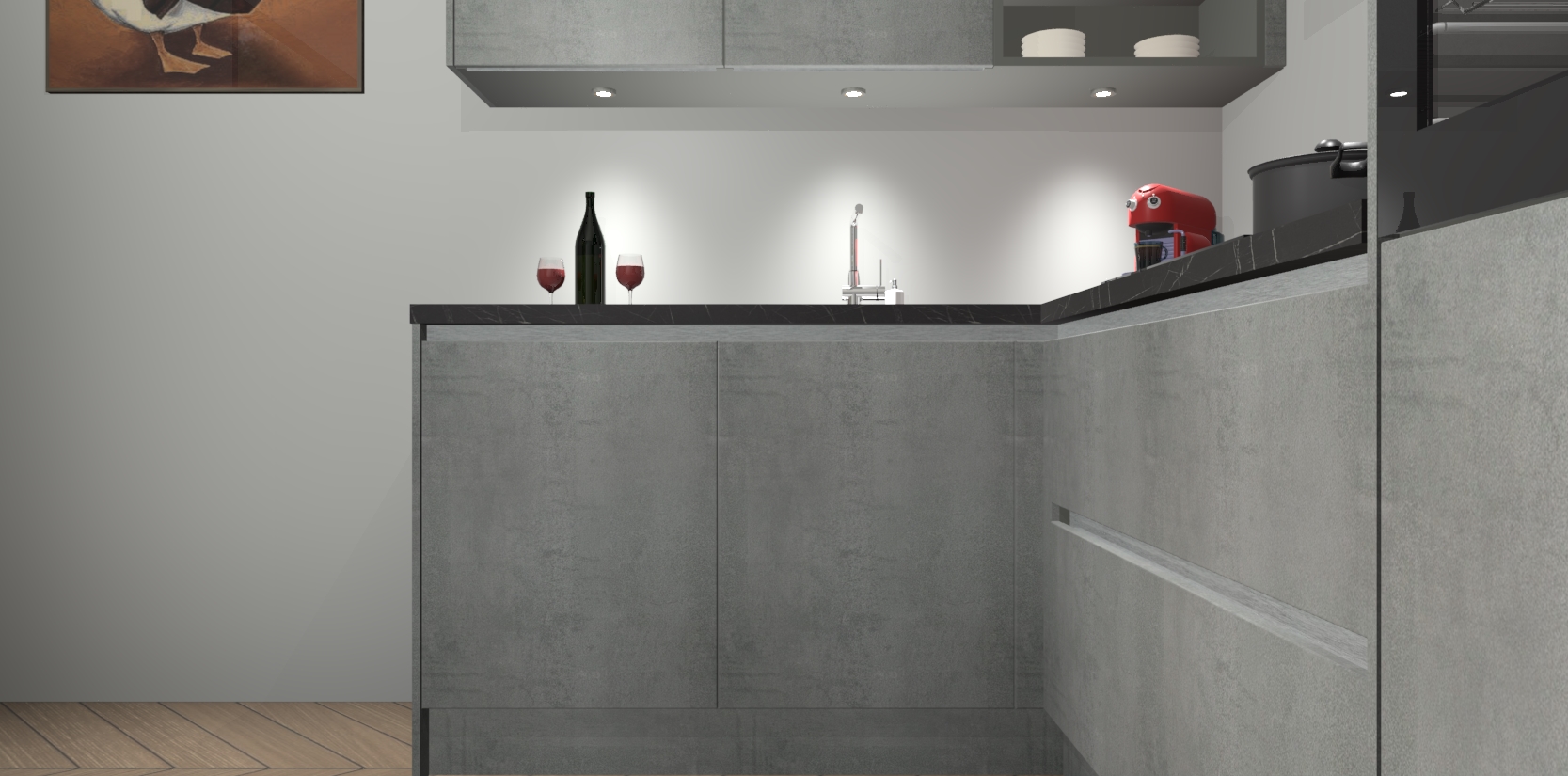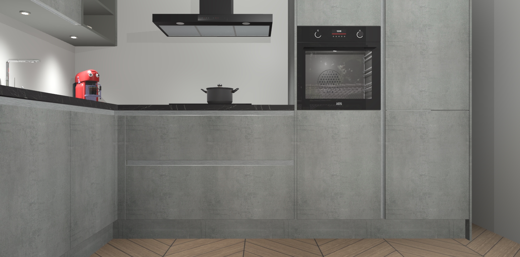 De Beton Parelgrijs greeploze keuken Cognac gaat alleen maar om de beste keukenervaring. Kies gewoon de beste apparatuur en ongeëvenaarde Duitse constructie die u thuis wilt hebben en verander uw huiskamer hartelijkheid meteen in professionaliteit. Laat de toon weten dat u gemakkelijk kan genieten van alle luxe die u verdiend? Bestel nu de Beton Parelgrijs greeploze keuken Cognac voor bij u thuis!