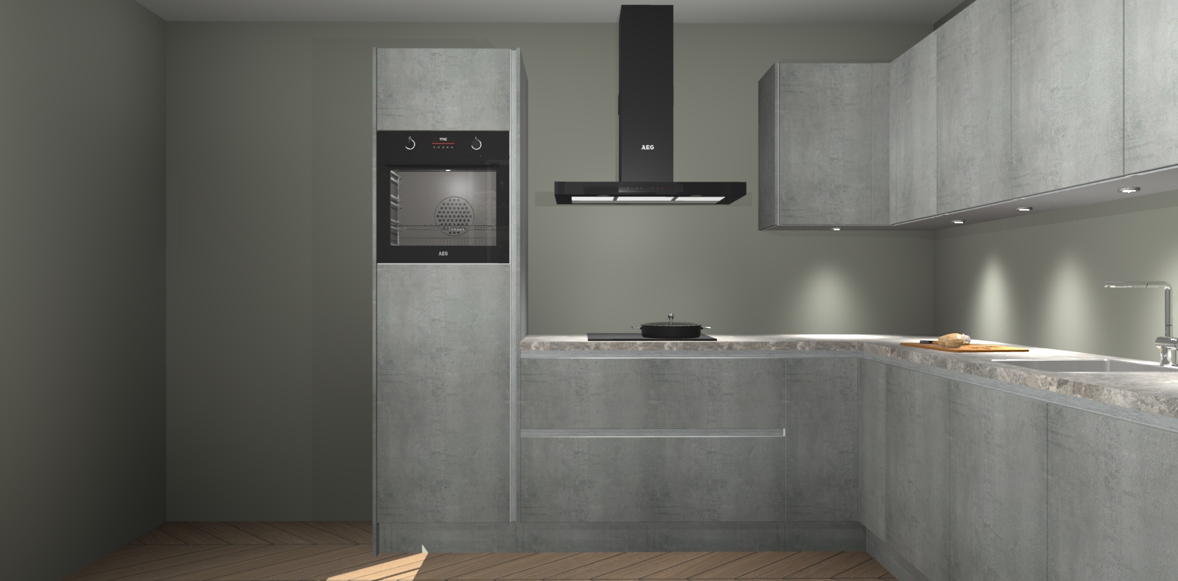De Beton Parelgrijs greeploze keuken Debar is uitgerust met vijf inbouwapparaten die elke kooktaak handig en efficiënt maken. Een oven, inductiekookplaat, afzuigkap, vaatwasser en koelkast zijn standaard, maar kunnen na bestelling eenvoudig worden geupgrade naar AEG. Profiteer vervolgens van de softclose deuren voor snelle toegang en geruisloze toegang.