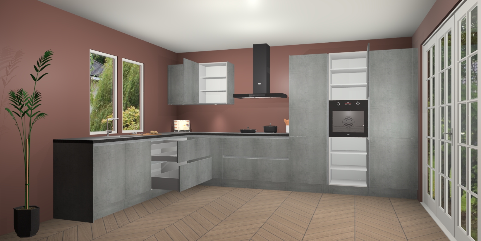 Heeft u nog apparatuur nodig? Geen probleem: de Beton Parelgrijs greeploze keuken Debrecen bevat vijf ingebouwde apparaten - een oven, inductiekookplaat, afzuigkap, vaatwasser en koelkast - die gemakkelijk kunnen worden bijgewerkt naar AEG na bestelling. En als dat nog niet genoeg is; onze kasten worden pre-geassembleerd geleverd en zijn verkrijgbaar tegen een vastgeroeste lage prijs! U hoeft nooit meer te zoeken naar goede kwaliteit en service want onze producten hebben echt Duitse kwaliteit.