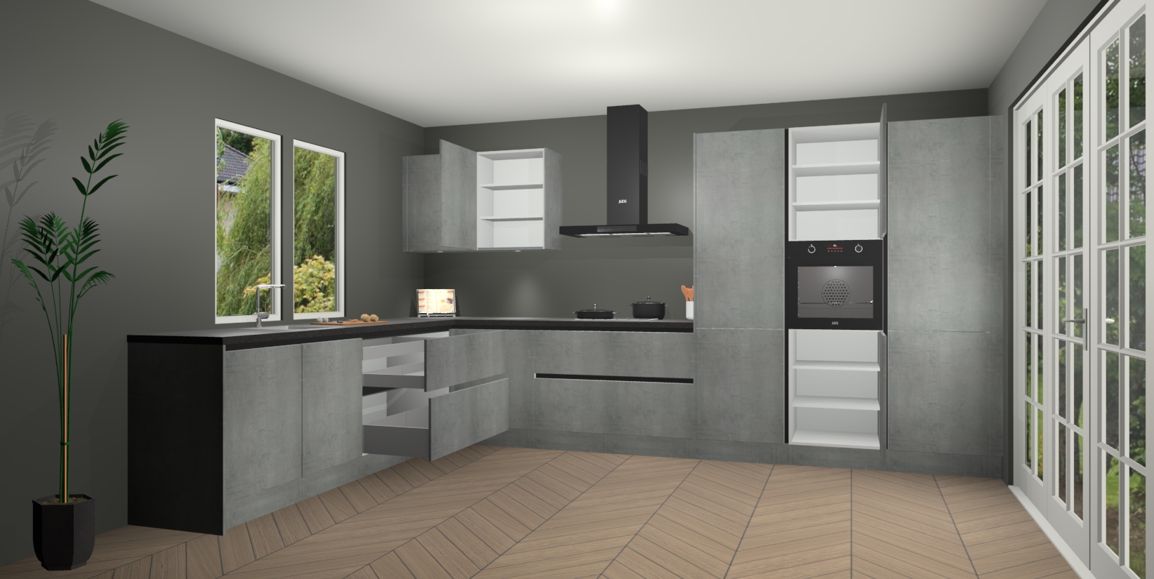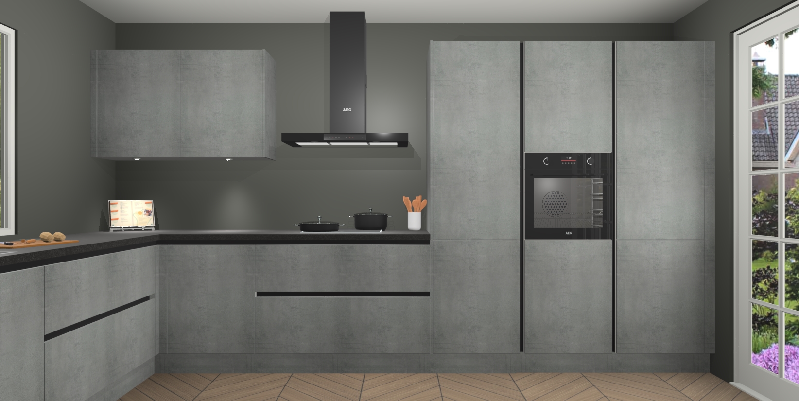 Heeft u nog apparatuur nodig? Geen probleem: de Beton Parelgrijs greeploze keuken Debrecen bevat vijf ingebouwde apparaten - een oven, inductiekookplaat, afzuigkap, vaatwasser en koelkast - die gemakkelijk kunnen worden bijgewerkt naar AEG na bestelling. En als dat nog niet genoeg is; onze kasten worden pre-geassembleerd geleverd en zijn verkrijgbaar tegen een vastgeroeste lage prijs! U hoeft nooit meer te zoeken naar goede kwaliteit en service want onze producten hebben echt Duitse kwaliteit.