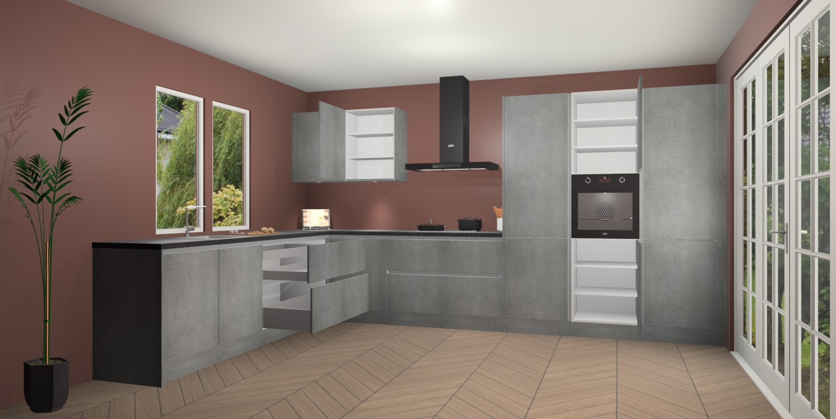Heeft u nog apparatuur nodig? Geen probleem: de Beton Parelgrijs greeploze keuken Debrecen bevat vijf ingebouwde apparaten - een oven, inductiekookplaat, afzuigkap, vaatwasser en koelkast - die gemakkelijk kunnen worden bijgewerkt naar AEG na bestelling. En als dat nog niet genoeg is; onze kasten worden pre-geassembleerd geleverd en zijn verkrijgbaar tegen een vastgeroeste lage prijs! U hoeft nooit meer te zoeken naar goede kwaliteit en service want onze producten hebben echt Duitse kwaliteit.