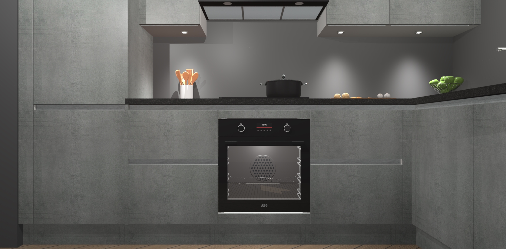 De Beton Parelgrijs greeploze keuken Geneve is uitgerust met 5 inbouwapparaten - een oven, inductiekookplaat, afzuigkap, vaatwasser en koelkast - voor al uw kook- en bewaarbehoeftes. U kunt deze apparaten desgewenst eenvoudig upgraden naar AEG of de oven omruilen voor een combimagnetron na het plaatsen van uw bestelling. En met de soft close deuren, voldoende opbergruimte en kasten die voorgemonteerd worden geleverd, bent u in een mum van tijd klaar om heerlijke maaltijden te bereiden!