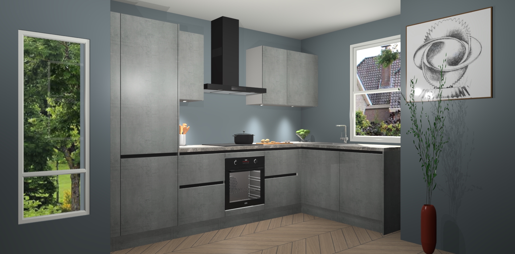 De Beton Parelgrijs greeploze keuken Geneve is precies wat u nodig heeft als u op zoek bent naar modern design, versmolten met tijdloze schoonheid. De strakke afwerking voegt klasse toe terwijl het toch een uitnodigende sfeer behoudt; zeker om zowel gasten als uzelf te inspireren om in stijl te gaan koken! En nog beter, het zal uw budget niet breken - dus waarom wachten? Met de Beton Parelgrijs greeploze keuken Geneve bent u verzekerd van kwaliteit zonder in te leveren op de prijs!