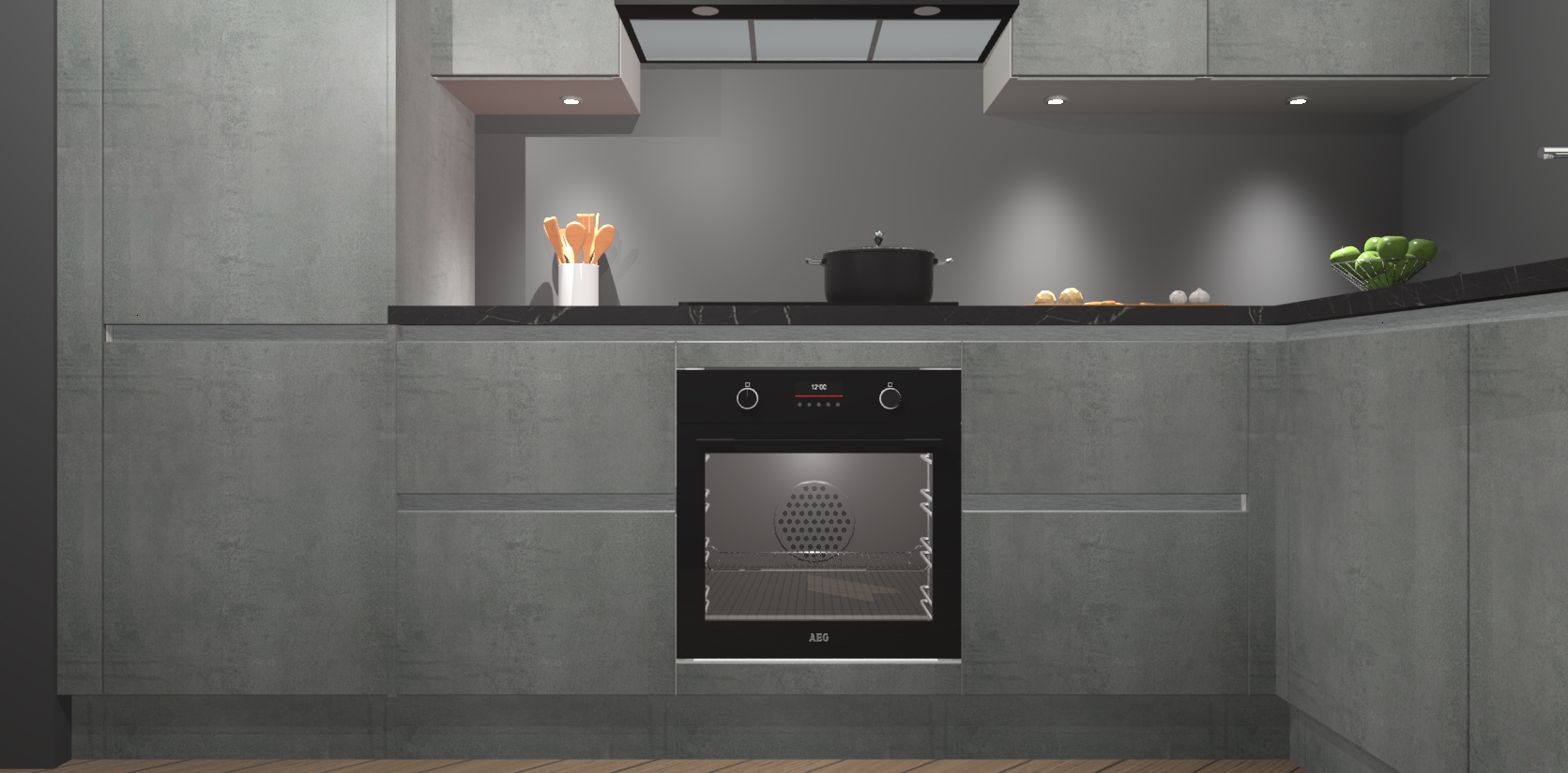 De Beton Parelgrijs greeploze keuken Geneve is uitgerust met 5 inbouwapparaten - een oven, inductiekookplaat, afzuigkap, vaatwasser en koelkast - voor al uw kook- en bewaarbehoeftes. U kunt deze apparaten desgewenst eenvoudig upgraden naar AEG of de oven omruilen voor een combimagnetron na het plaatsen van uw bestelling. En met de soft close deuren, voldoende opbergruimte en kasten die voorgemonteerd worden geleverd, bent u in een mum van tijd klaar om heerlijke maaltijden te bereiden!