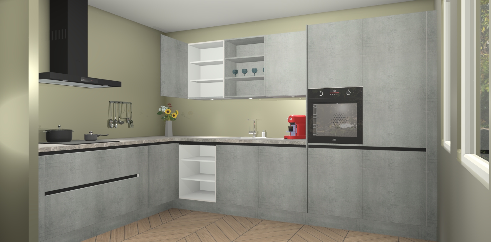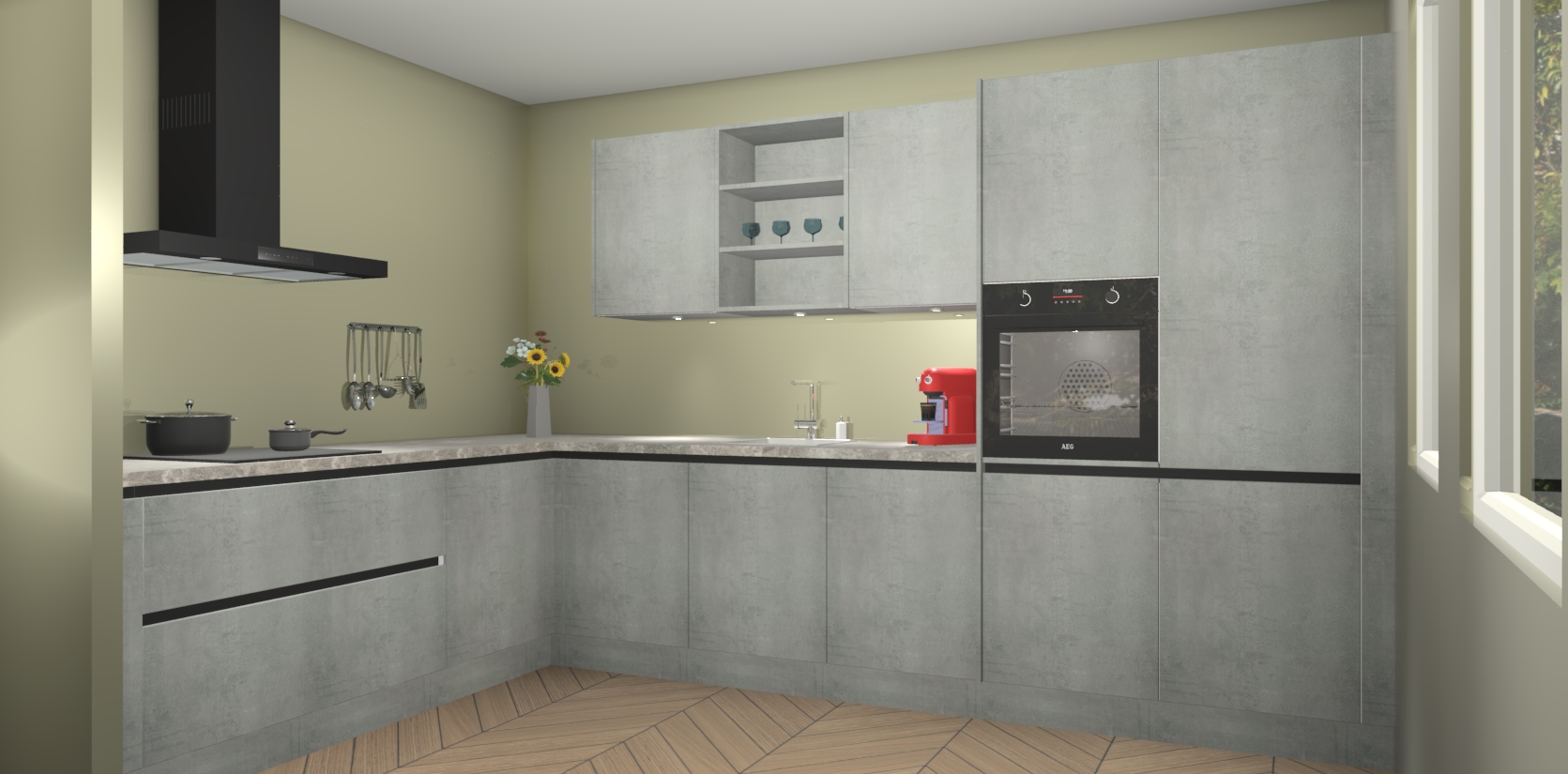 Dus waarom zou u wachten? Maak u klaar om bijeenkomsten voor familie en vrienden te organiseren en verblind ze met de stijlvol luxueuze Beton Parelgrijs greeploze keuken Gotenburg! Met veel opbergruimte in een fractie van de tijd en een prijs die geen compromis in kwaliteit vereist - dit is misschien wel het meest decadente keukenkoopje dat er is!