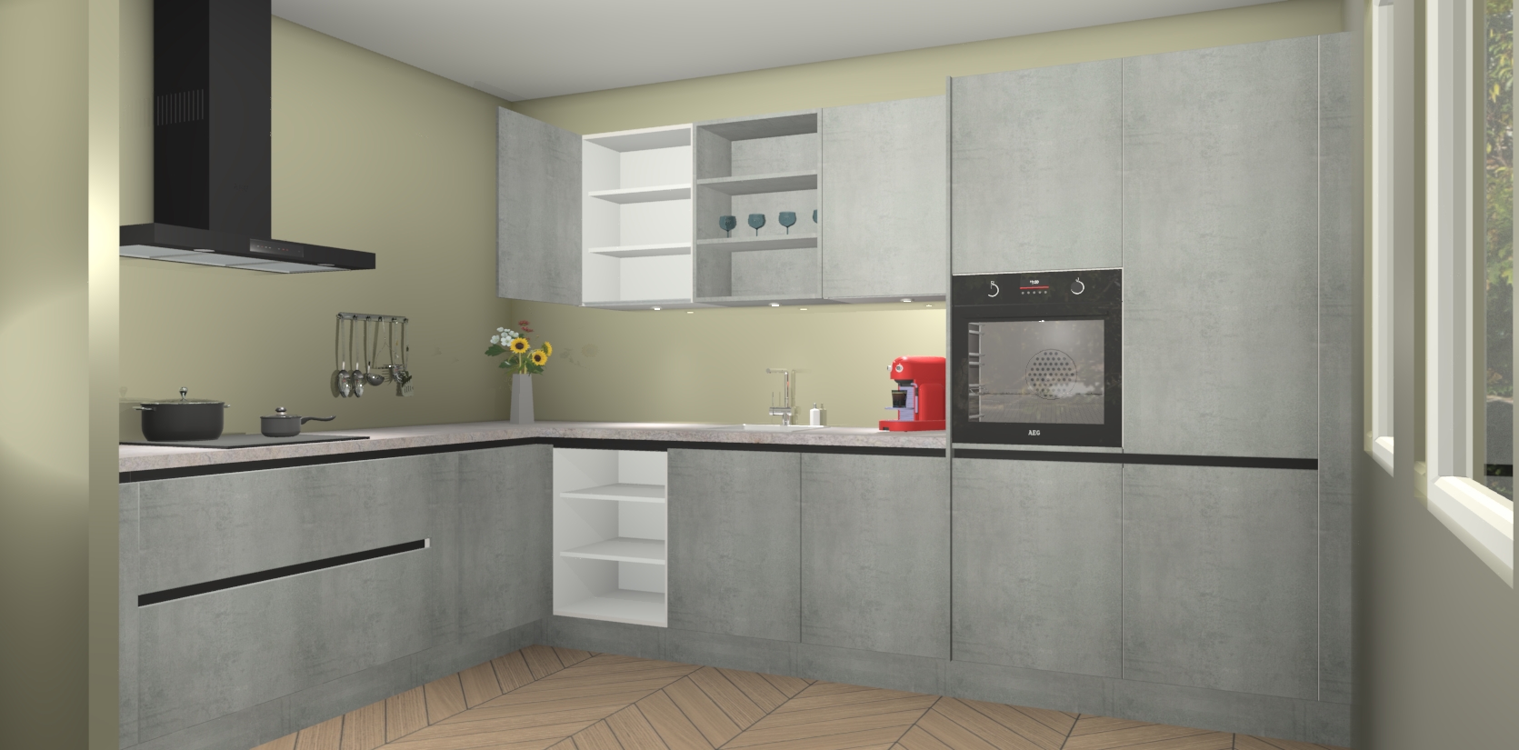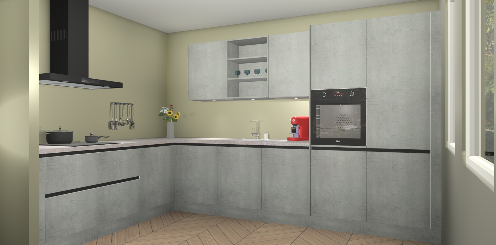 Dus waarom zou u wachten? Maak u klaar om bijeenkomsten voor familie en vrienden te organiseren en verblind ze met de stijlvol luxueuze Beton Parelgrijs greeploze keuken Gotenburg! Met veel opbergruimte in een fractie van de tijd en een prijs die geen compromis in kwaliteit vereist - dit is misschien wel het meest decadente keukenkoopje dat er is!