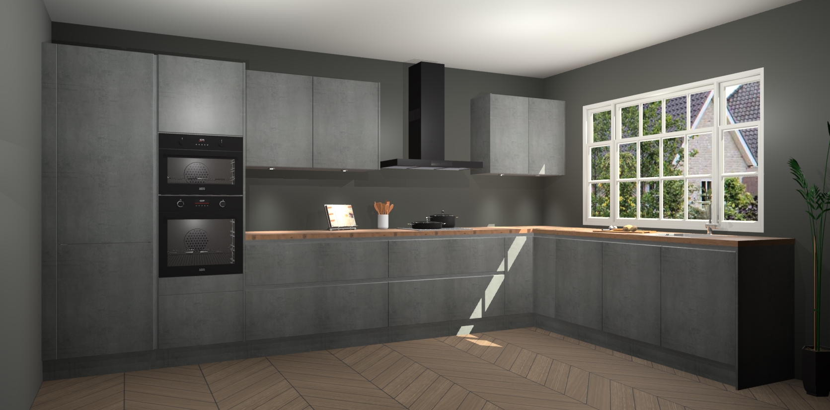 Kom dichtbij de perfecte keuken van uw dromen met de beton parelgrijs greeploze keuken Graz. Met een prachtige houtlook en eigentijds ontwerp, straalt deze keuken warmte en sfeer uit. Of u nu liefhebber bent van traditionele of moderne stijlen, er is genoeg ruimte om aan al uw behoeften te voldoen.