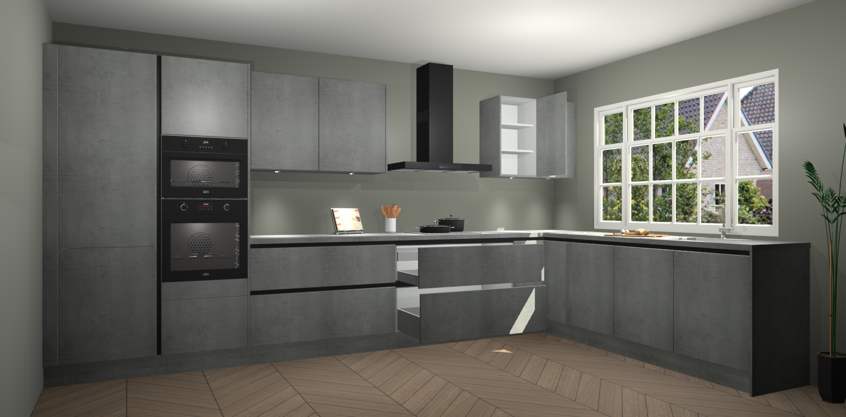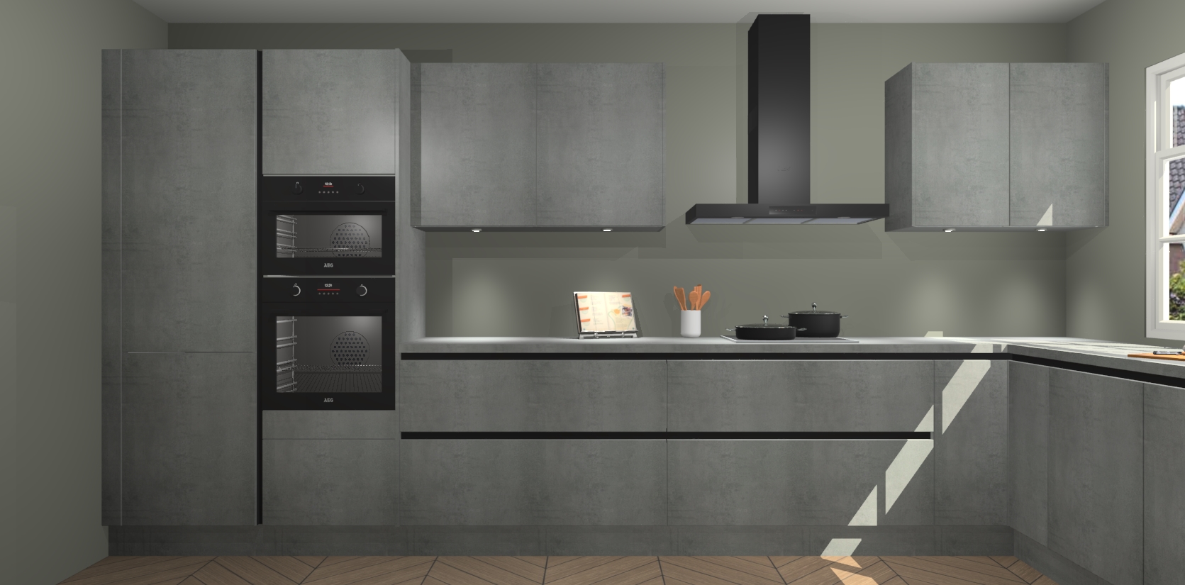 Heeft u nog apparatuur nodig? Geen probleem: de beton parelgrijs greeploze keuken Graz bevat vijf ingebouwde apparaten - een oven, inductiekookplaat, afzuigkap, vaatwasser en koelkast - die gemakkelijk kunnen worden bijgewerkt naar AEG na bestelling. En als dat nog niet genoeg is; onze kasten worden pre-geassembleerd geleverd en zijn verkrijgbaar tegen een vastgeroeste lage prijs! U hoeft nooit meer te zoeken naar goede kwaliteit en service want onze producten hebben echt Duitse kwaliteit.