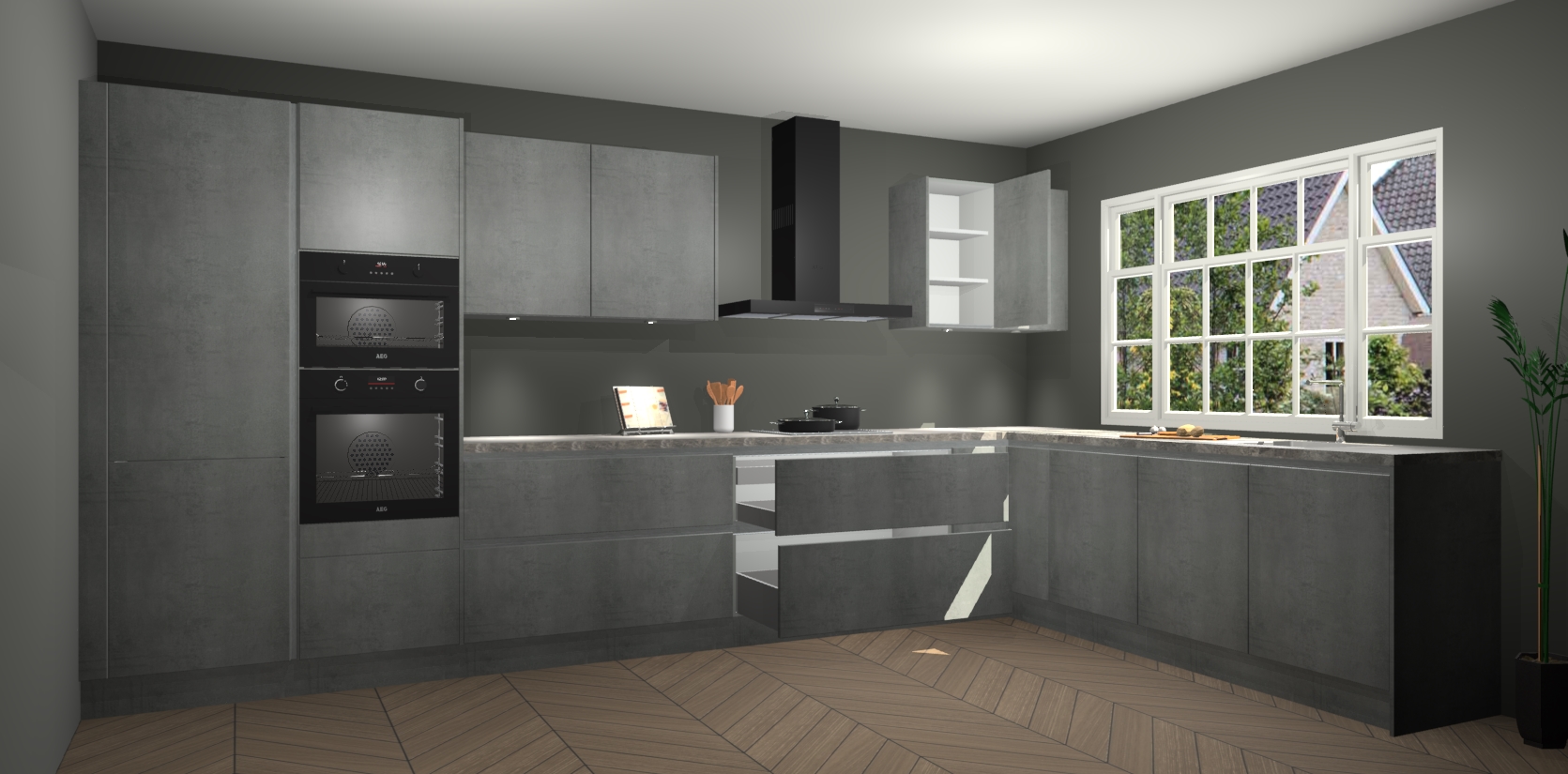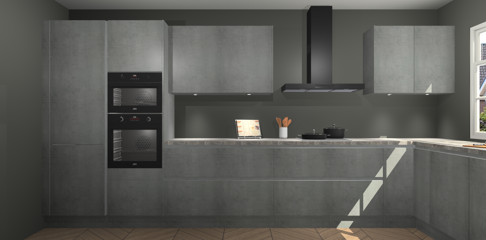 Heeft u nog apparatuur nodig? Geen probleem: de beton parelgrijs greeploze keuken Graz bevat vijf ingebouwde apparaten - een oven, inductiekookplaat, afzuigkap, vaatwasser en koelkast - die gemakkelijk kunnen worden bijgewerkt naar AEG na bestelling. En als dat nog niet genoeg is; onze kasten worden pre-geassembleerd geleverd en zijn verkrijgbaar tegen een vastgeroeste lage prijs! U hoeft nooit meer te zoeken naar goede kwaliteit en service want onze producten hebben echt Duitse kwaliteit.