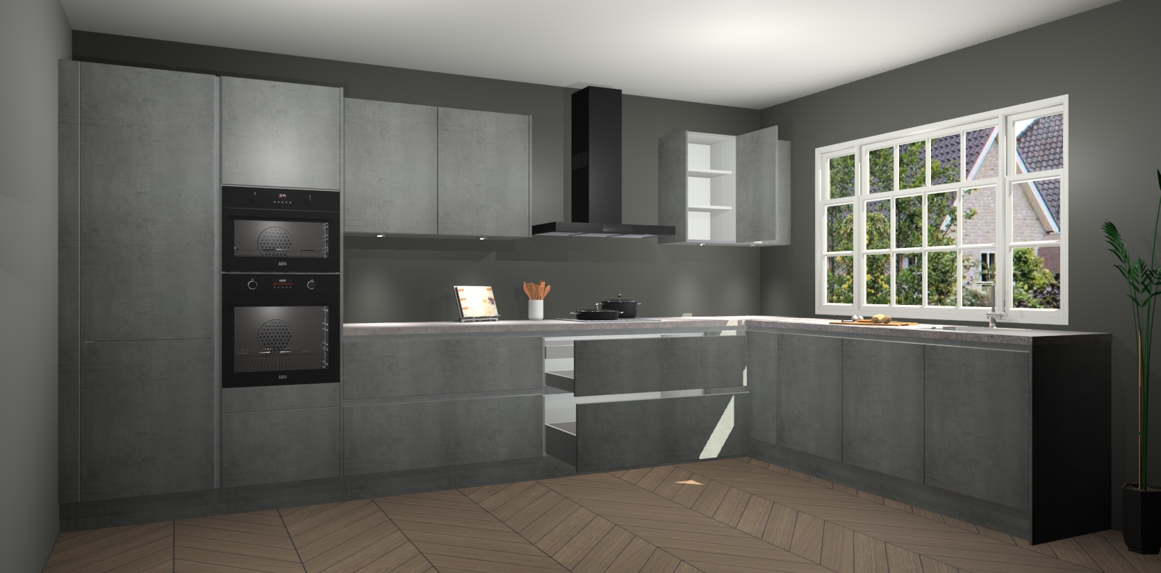 Heeft u nog apparatuur nodig? Geen probleem: de beton parelgrijs greeploze keuken Graz bevat vijf ingebouwde apparaten - een oven, inductiekookplaat, afzuigkap, vaatwasser en koelkast - die gemakkelijk kunnen worden bijgewerkt naar AEG na bestelling. En als dat nog niet genoeg is; onze kasten worden pre-geassembleerd geleverd en zijn verkrijgbaar tegen een vastgeroeste lage prijs! U hoeft nooit meer te zoeken naar goede kwaliteit en service want onze producten hebben echt Duitse kwaliteit.