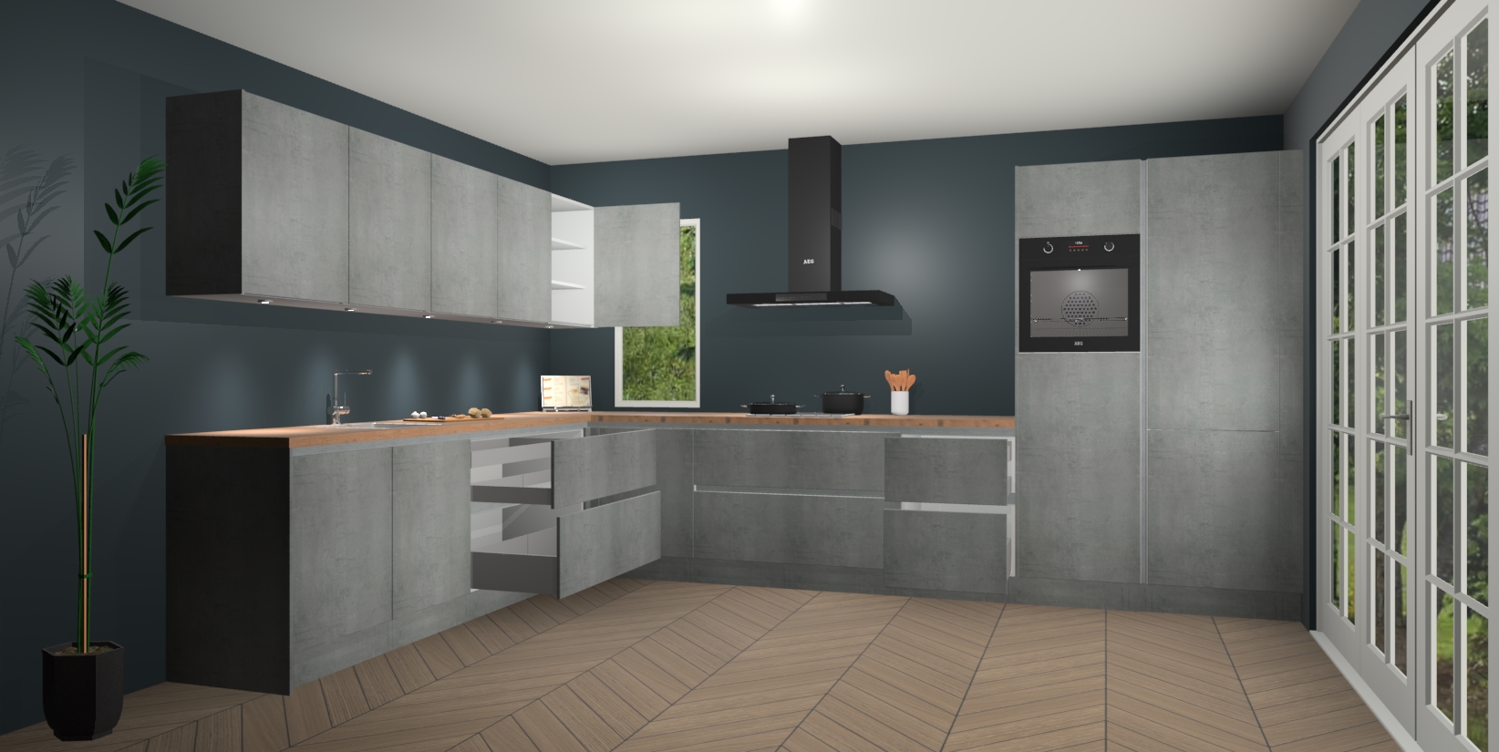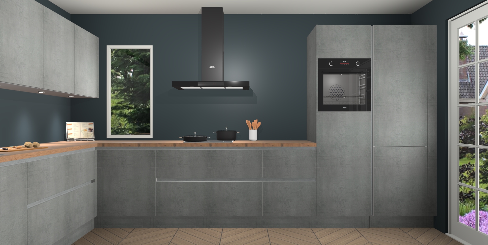 Heeft u nog apparatuur nodig? Geen probleem: de beton parelgrijs greeploze keuken Harare bevat vijf ingebouwde apparaten - een oven, inductiekookplaat, afzuigkap, vaatwasser en koelkast - die gemakkelijk kunnen worden bijgewerkt naar AEG na bestelling. En als dat nog niet genoeg is; onze kasten worden pre-geassembleerd geleverd en zijn verkrijgbaar tegen een vastgeroeste lage prijs! U hoeft nooit meer te zoeken naar goede kwaliteit en service want onze producten hebben echt Duitse kwaliteit.