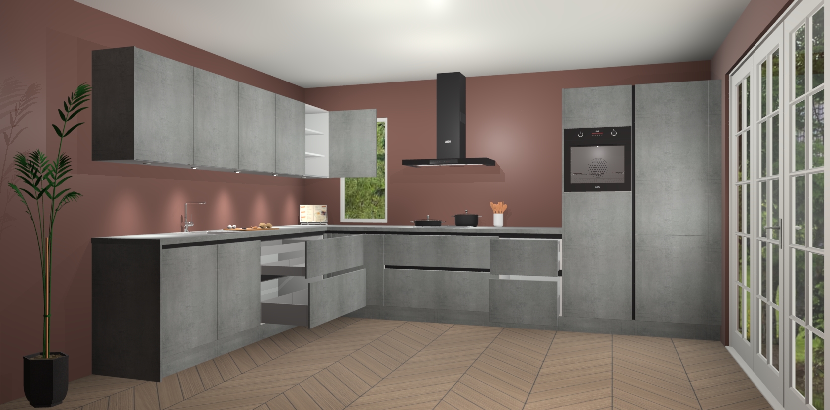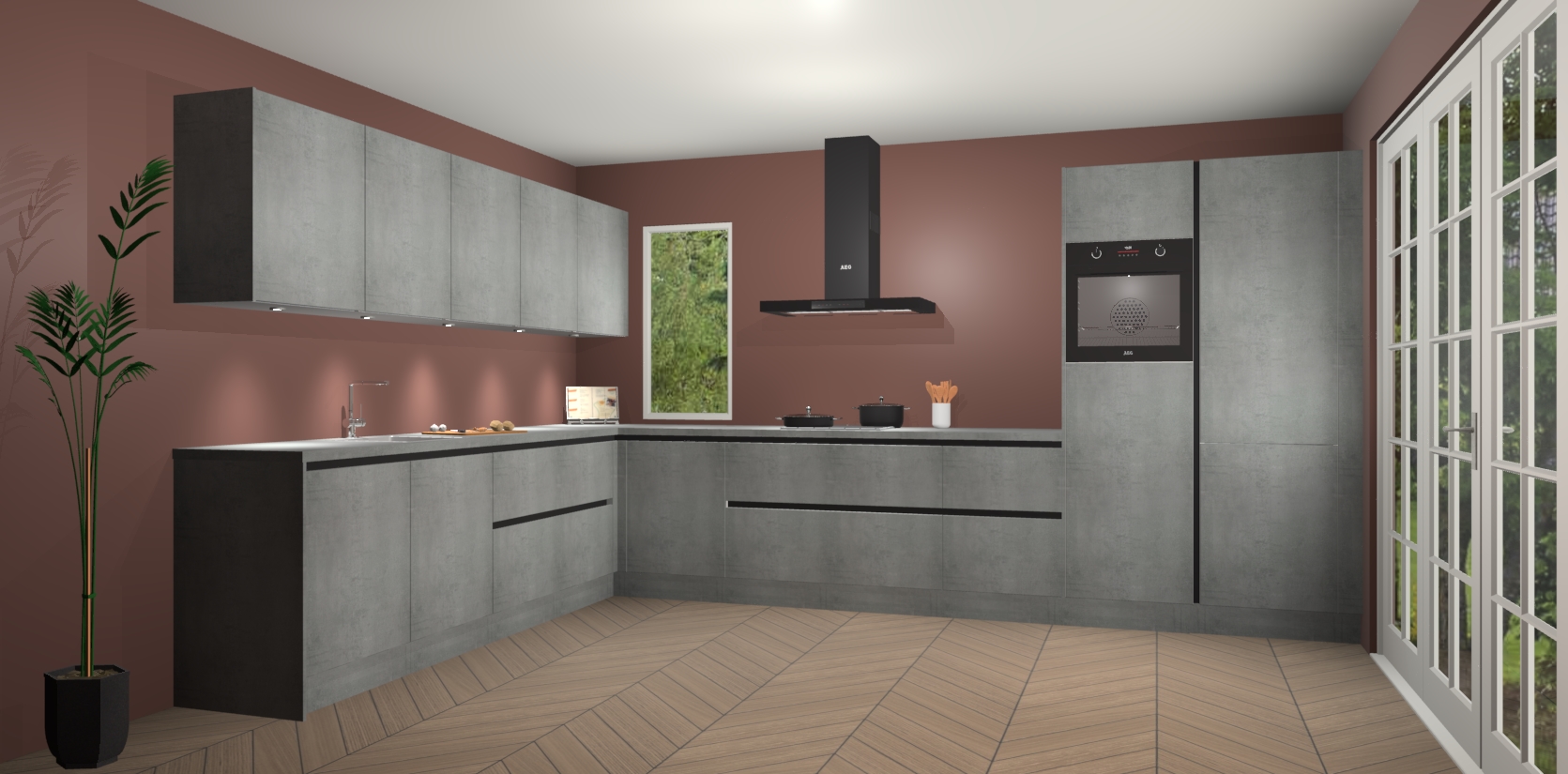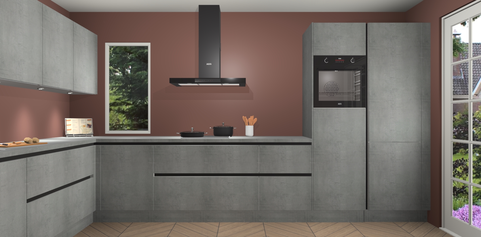 Heeft u nog apparatuur nodig? Geen probleem: de beton parelgrijs greeploze keuken Harare bevat vijf ingebouwde apparaten - een oven, inductiekookplaat, afzuigkap, vaatwasser en koelkast - die gemakkelijk kunnen worden bijgewerkt naar AEG na bestelling. En als dat nog niet genoeg is; onze kasten worden pre-geassembleerd geleverd en zijn verkrijgbaar tegen een vastgeroeste lage prijs! U hoeft nooit meer te zoeken naar goede kwaliteit en service want onze producten hebben echt Duitse kwaliteit.