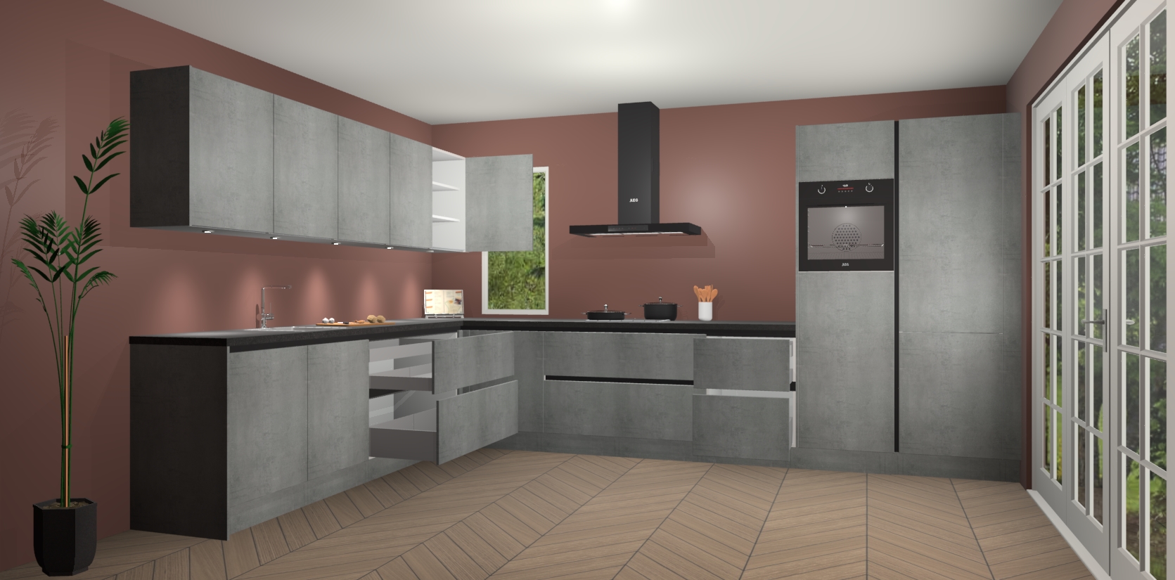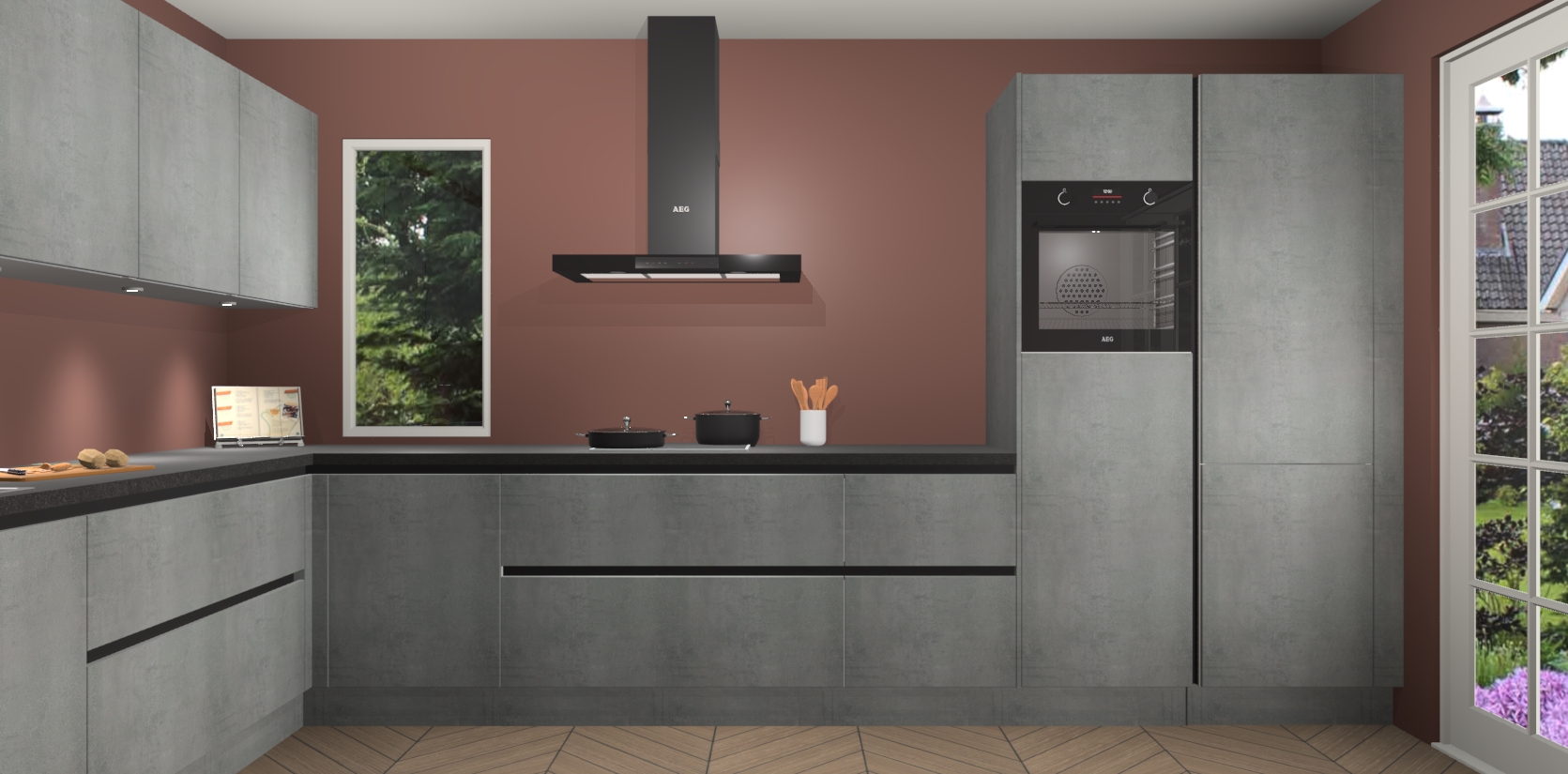 Heeft u nog apparatuur nodig? Geen probleem: de beton parelgrijs greeploze keuken Harare bevat vijf ingebouwde apparaten - een oven, inductiekookplaat, afzuigkap, vaatwasser en koelkast - die gemakkelijk kunnen worden bijgewerkt naar AEG na bestelling. En als dat nog niet genoeg is; onze kasten worden pre-geassembleerd geleverd en zijn verkrijgbaar tegen een vastgeroeste lage prijs! U hoeft nooit meer te zoeken naar goede kwaliteit en service want onze producten hebben echt Duitse kwaliteit.