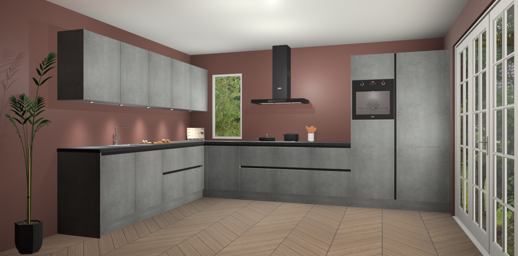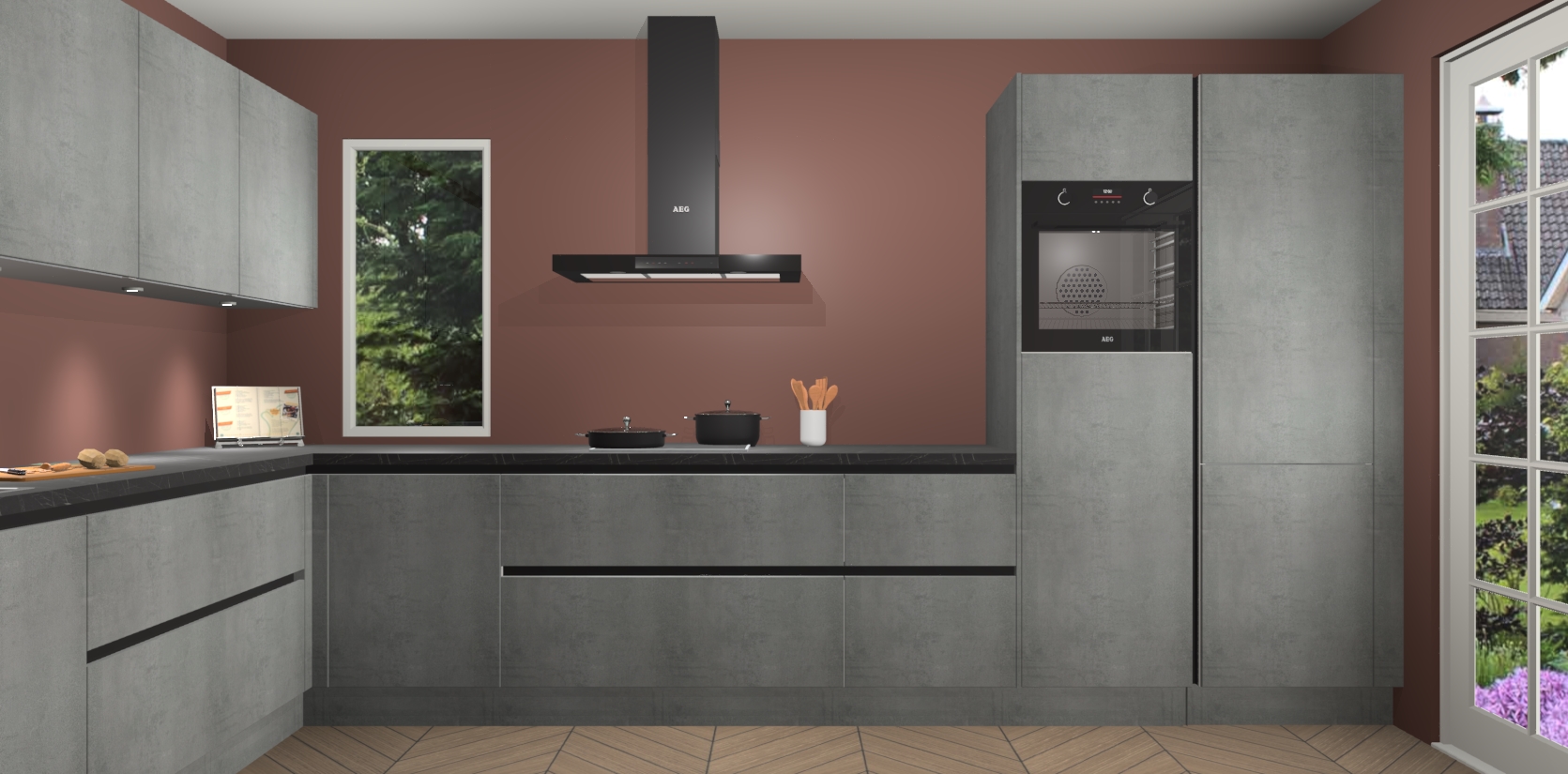 Heeft u nog apparatuur nodig? Geen probleem: de beton parelgrijs greeploze keuken Harare bevat vijf ingebouwde apparaten - een oven, inductiekookplaat, afzuigkap, vaatwasser en koelkast - die gemakkelijk kunnen worden bijgewerkt naar AEG na bestelling. En als dat nog niet genoeg is; onze kasten worden pre-geassembleerd geleverd en zijn verkrijgbaar tegen een vastgeroeste lage prijs! U hoeft nooit meer te zoeken naar goede kwaliteit en service want onze producten hebben echt Duitse kwaliteit.