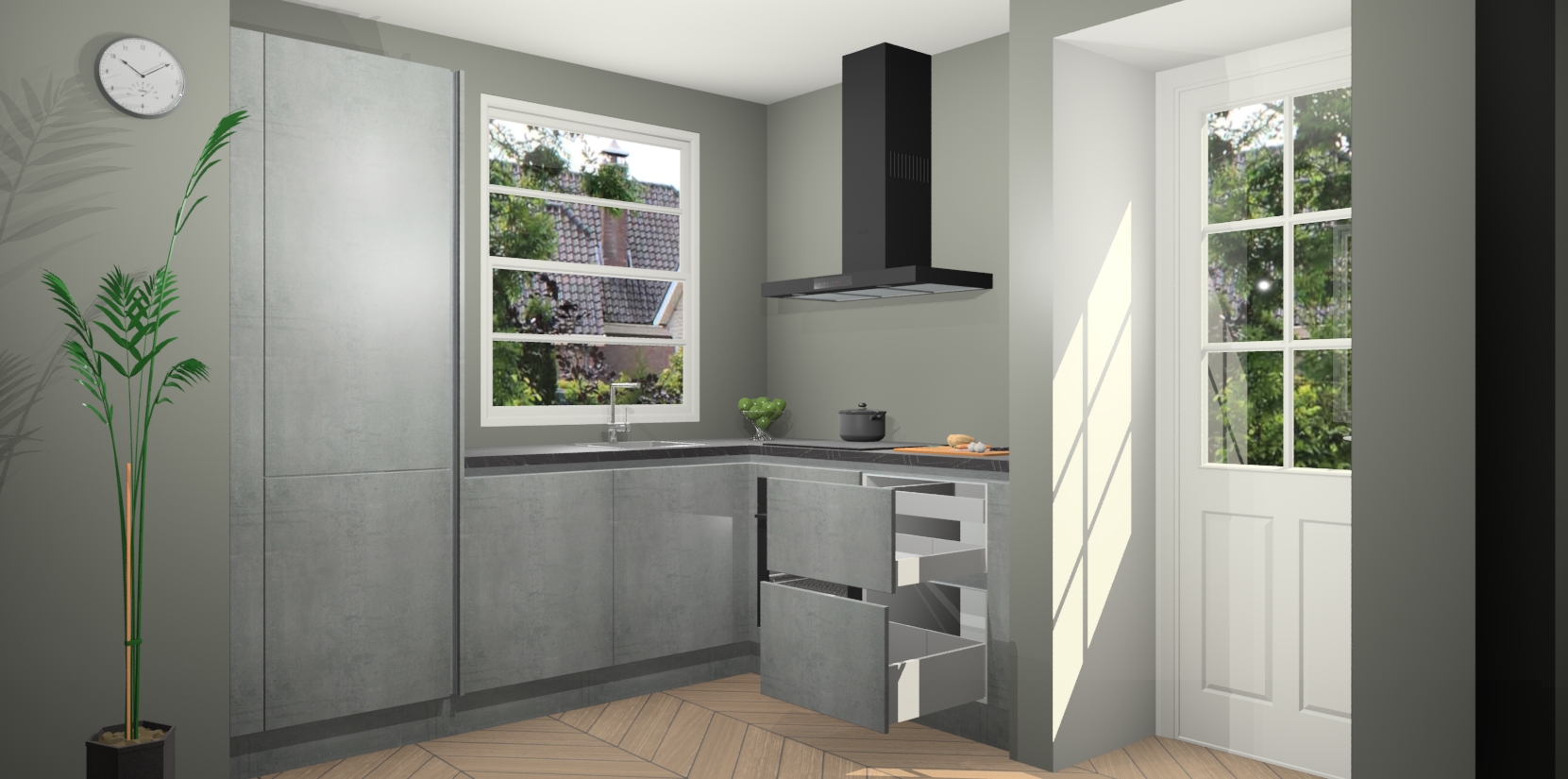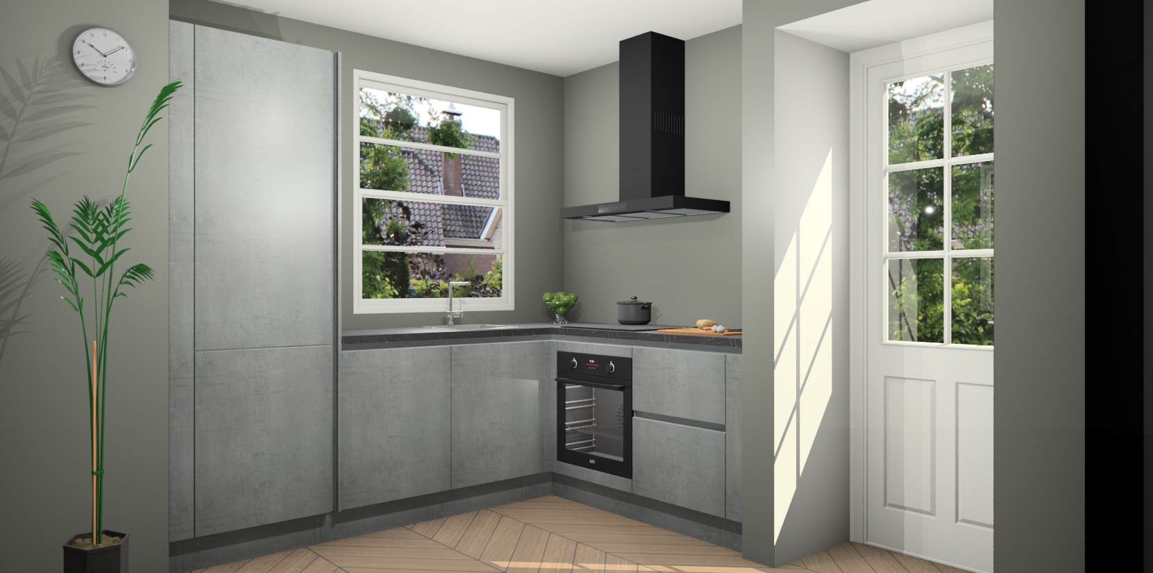 Wilt u een echte aanwinst voor uw keuken, maar bent u op zoek naar iets specialers dan de standaardkeukens? Kies dan voor de Beton Parelgrijs greeploze keuken Harbin! Dit prachtige hoekkeukenontwerp geeft u alle ruimte om optimaal te genieten van heerlijk koken. Het uitmuntende afwerkingsniveau, de fraaie houtstructuur en de sfeervolle zwarte grepen maken van de Beton Parelgrijs greeploze keuken Harbin de perfecte keuze voor zowel enthousiaste thuiskoks als design-minded interieurliefhebbers.
