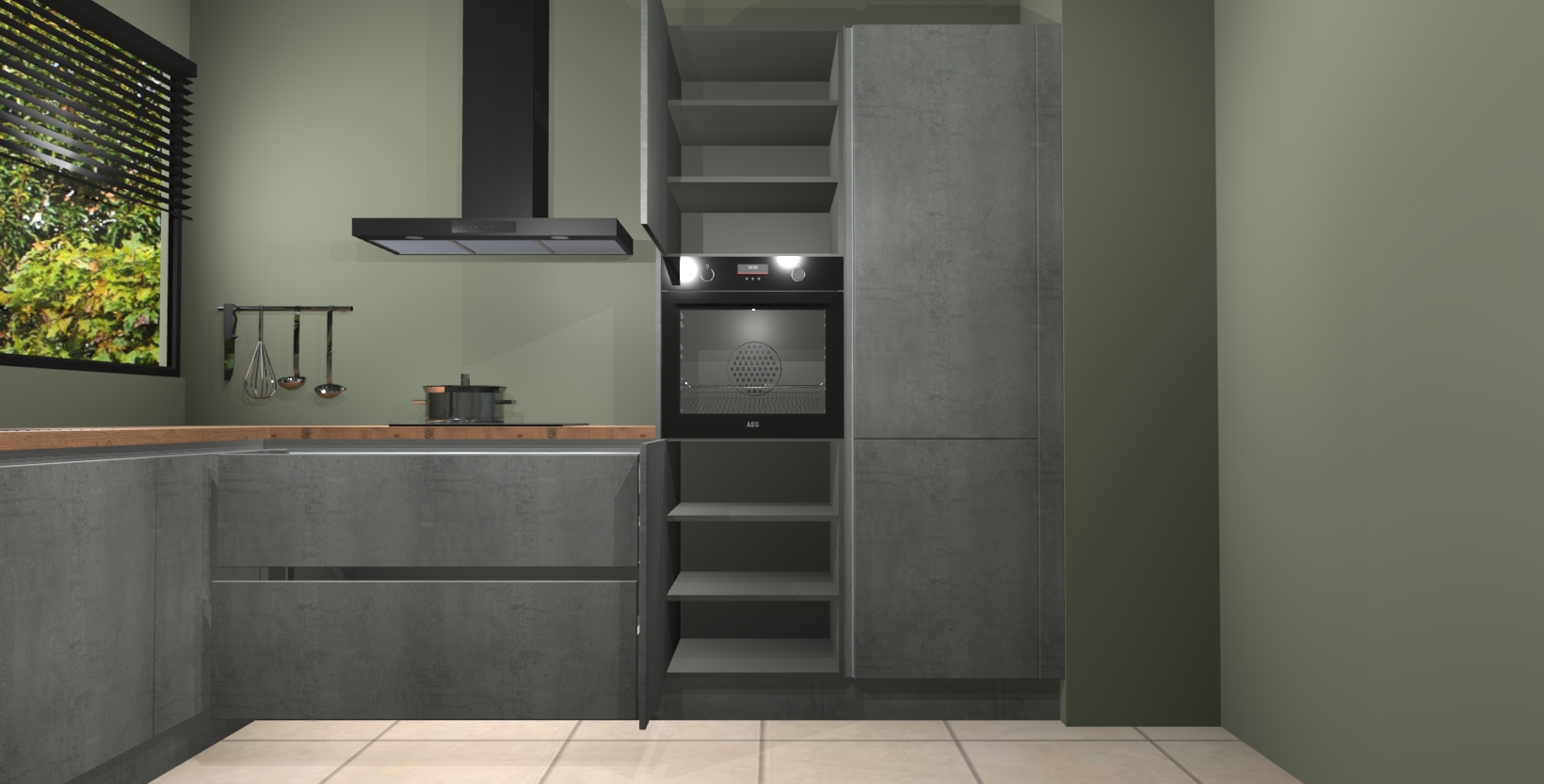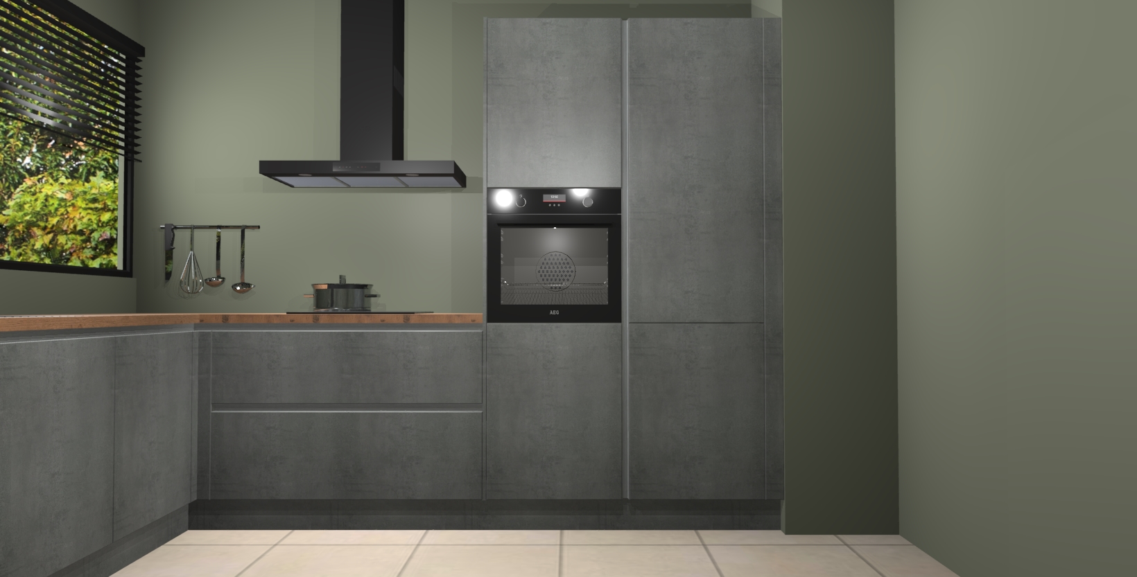 Met een modern, tijdloos design en ruime opslagruimte, zult u zich in no-time thuis voelen in uw nieuwe keuken. Uw leven wordt eenvoudiger met de soft-close deuren die voor het ultieme stille comfort zorgen - geen geluid dat u stoort terwijl u kookt. Ook is de keuken voorzien van 5 ingebouwde apparaten: een oven, inductie kookplaat, afzuigkap, vaatwasser en koelkast. Deze kunnen gemakkelijk na bestelling worden bijgewerkt naar AEG - waardoor uw luxe ervaring compleet is.