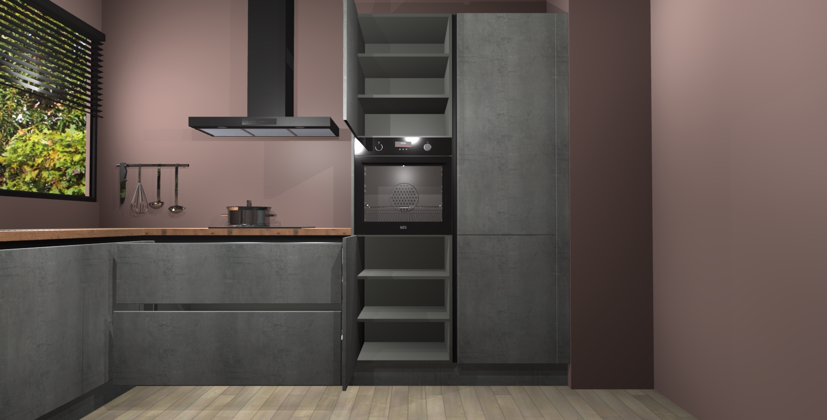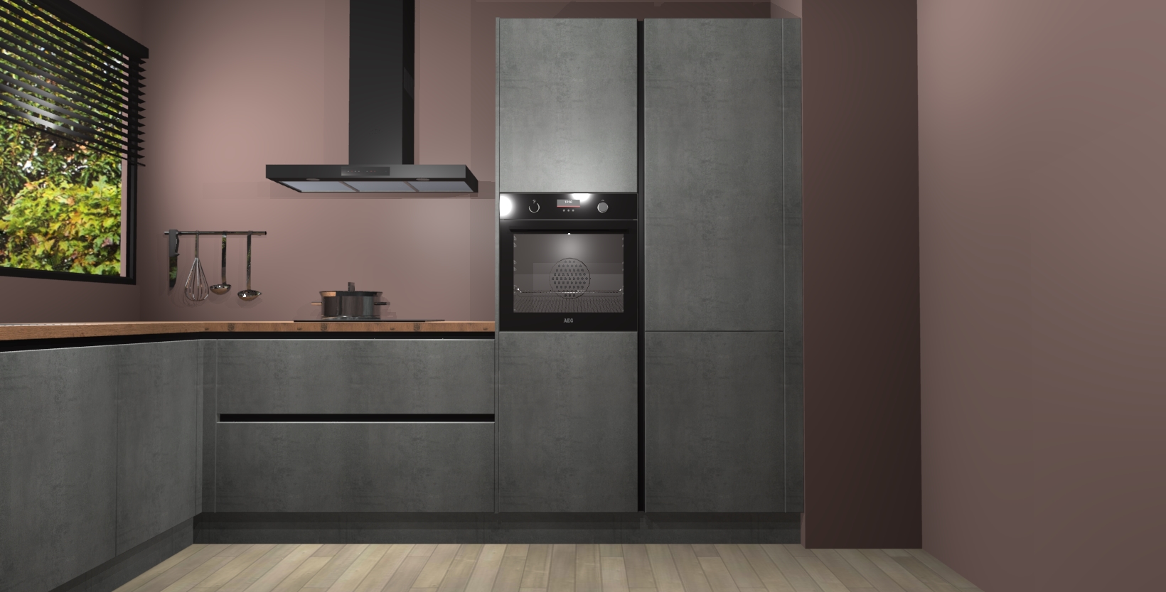 Met een modern, tijdloos design en ruime opslagruimte, zult u zich in no-time thuis voelen in uw nieuwe keuken. Uw leven wordt eenvoudiger met de soft-close deuren die voor het ultieme stille comfort zorgen - geen geluid dat u stoort terwijl u kookt. Ook is de keuken voorzien van 5 ingebouwde apparaten: een oven, inductie kookplaat, afzuigkap, vaatwasser en koelkast. Deze kunnen gemakkelijk na bestelling worden bijgewerkt naar AEG - waardoor uw luxe ervaring compleet is.