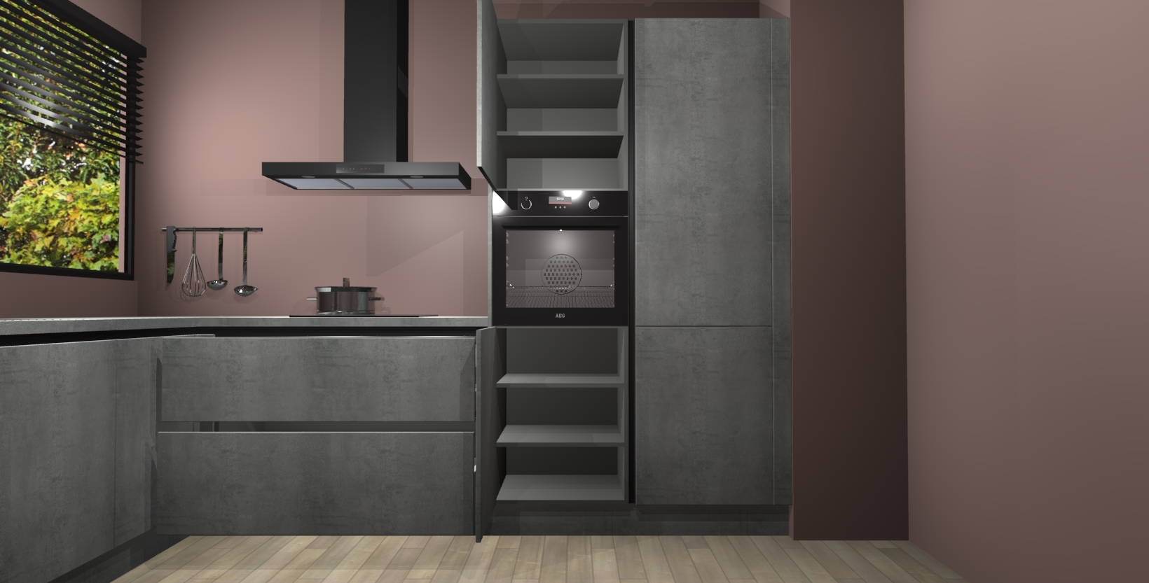 Met een modern, tijdloos design en ruime opslagruimte, zult u zich in no-time thuis voelen in uw nieuwe keuken. Uw leven wordt eenvoudiger met de soft-close deuren die voor het ultieme stille comfort zorgen - geen geluid dat u stoort terwijl u kookt. Ook is de keuken voorzien van 5 ingebouwde apparaten: een oven, inductie kookplaat, afzuigkap, vaatwasser en koelkast. Deze kunnen gemakkelijk na bestelling worden bijgewerkt naar AEG - waardoor uw luxe ervaring compleet is.