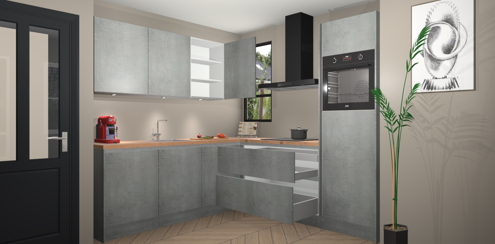 Inclusief plinten, stelpoten en werkblad