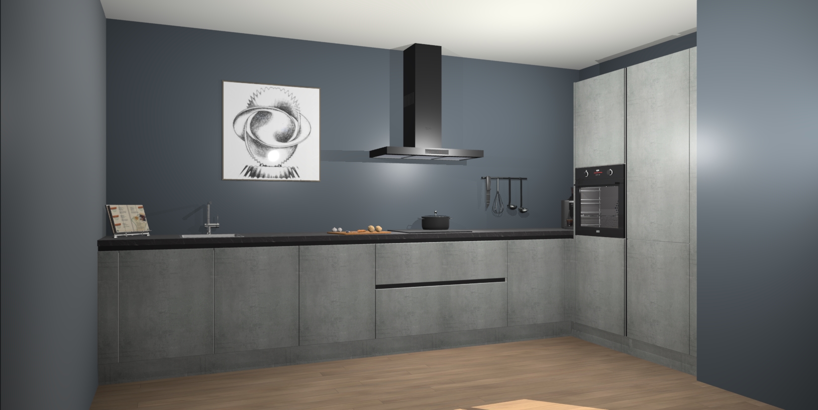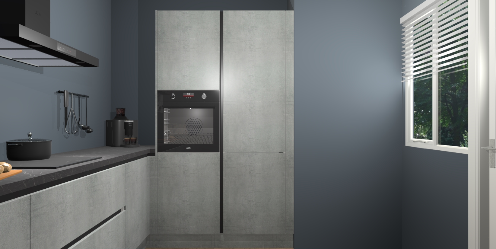 Welkom bij de Beton Parelgrijs greeploze keuken Khao Lak. Deze prachtige keuken zal de komende jaren het middelpunt van de belangstelling in uw huis zijn. Uitgerust met vijf inbouwapparaten komt u nooit kookgereedschap tekort. Bovendien geeft de warme houtlook elke ruimte een uitnodigende en tijdloze uitstraling.