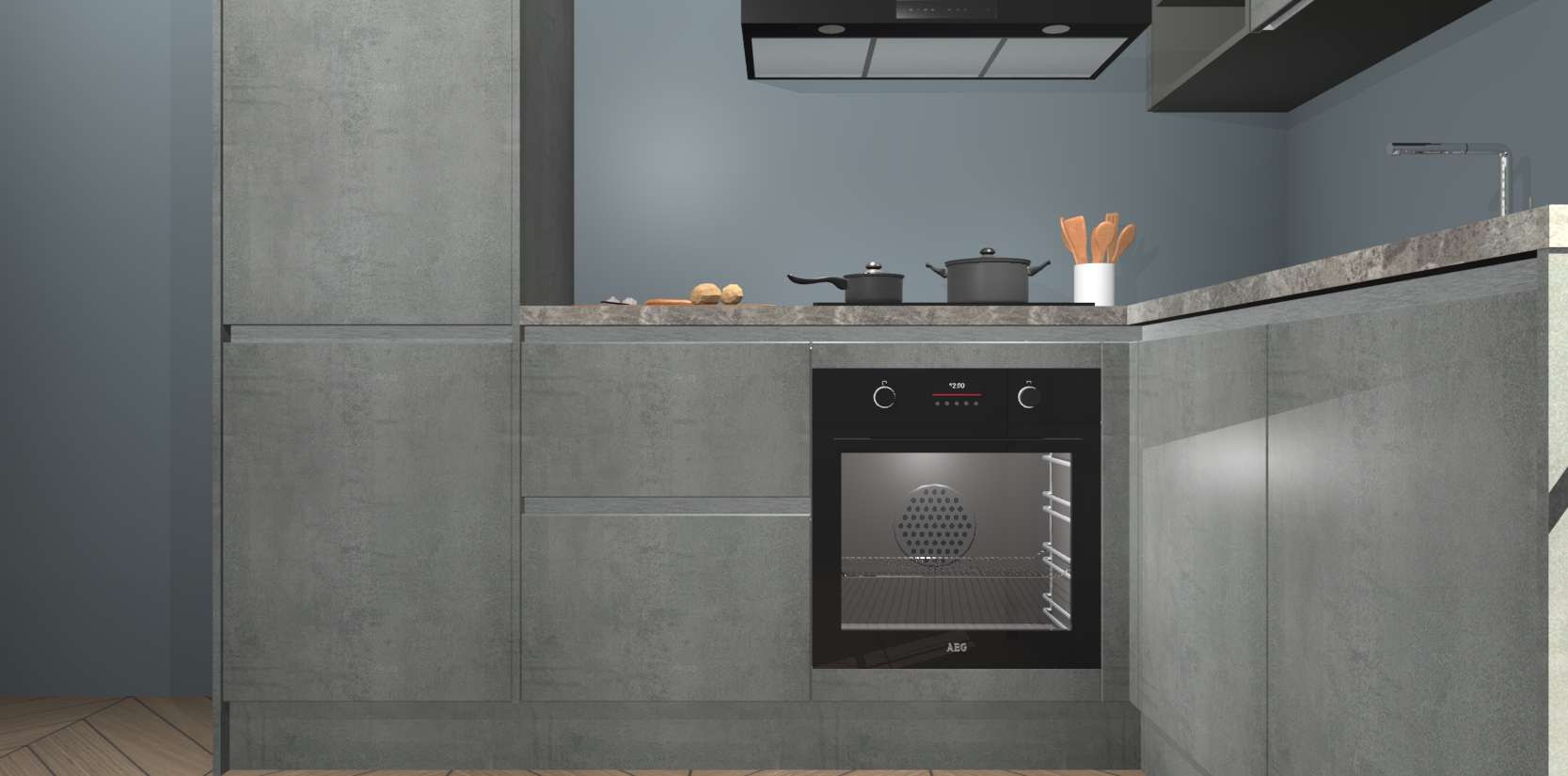 Dit model biedt u voldoende opbergruimte en vijf ingebouwde apparaten: een oven, inductiekookplaat, afzuigkap, vaatwasser en koelkast. Deze apparaten kunnen gemakkelijk worden geüpgrade naar AEG nadat u besteld heeft. De verschillende laden en kastjes bevatten softclose-deuren waardoor ze gezellig dichtvallen met een geruststellend helemaal geruisloos geluid. En dat is nog niet alles! We garanderen ook dat de prijs altijd laag blijft - dus haal nu uw Beton Parelgrijs greeploze keuken Krakau terwijl het kan.