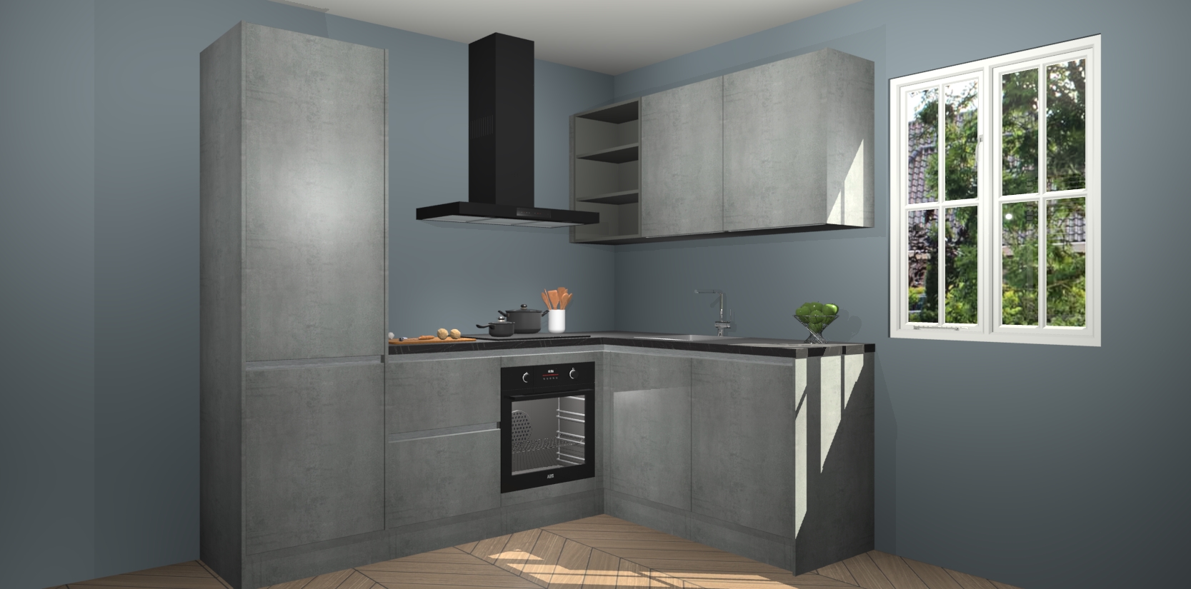 Inclusief plinten, stelpoten en werkblad