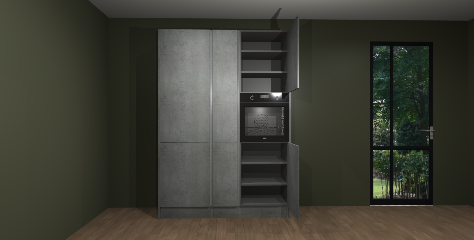 Met een modern, tijdloos design en ruime opslagruimte, zult u zich in no-time thuis voelen in uw nieuwe keuken. Uw leven wordt eenvoudiger met de soft-close deuren die voor het ultieme stille comfort zorgen - geen geluid dat u stoort terwijl u kookt. Ook is de keuken voorzien van 5 ingebouwde apparaten: een oven, inductie kookplaat, afzuigkap, vaatwasser en koelkast. Deze kunnen gemakkelijk na bestelling worden bijgewerkt naar AEG - waardoor uw luxe ervaring compleet is.