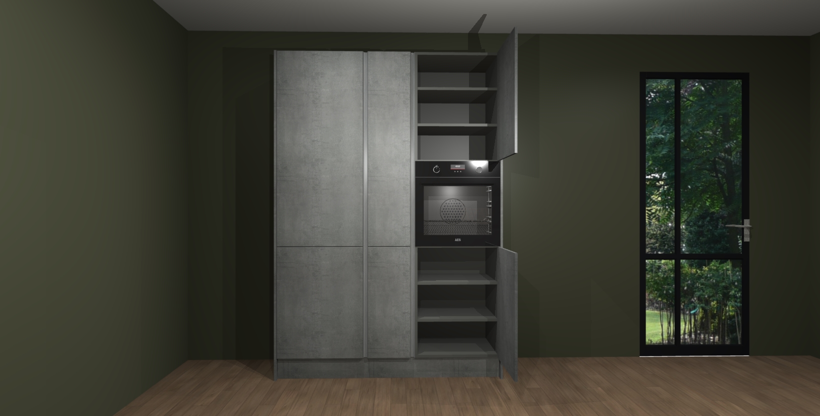 Met een modern, tijdloos design en ruime opslagruimte, zult u zich in no-time thuis voelen in uw nieuwe keuken. Uw leven wordt eenvoudiger met de soft-close deuren die voor het ultieme stille comfort zorgen - geen geluid dat u stoort terwijl u kookt. Ook is de keuken voorzien van 5 ingebouwde apparaten: een oven, inductie kookplaat, afzuigkap, vaatwasser en koelkast. Deze kunnen gemakkelijk na bestelling worden bijgewerkt naar AEG - waardoor uw luxe ervaring compleet is.