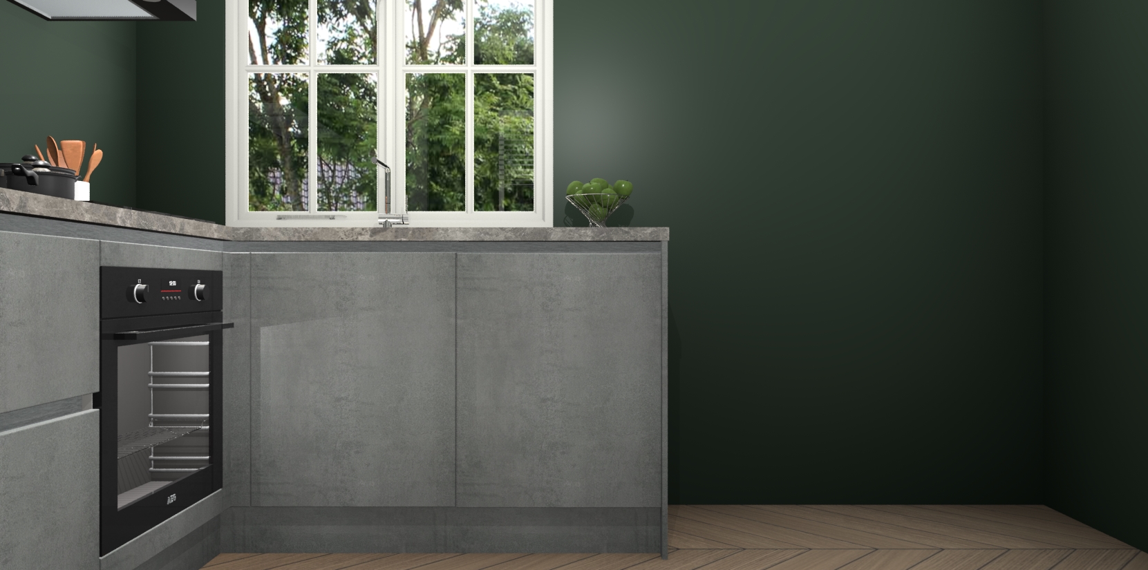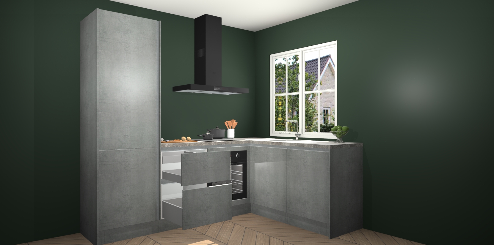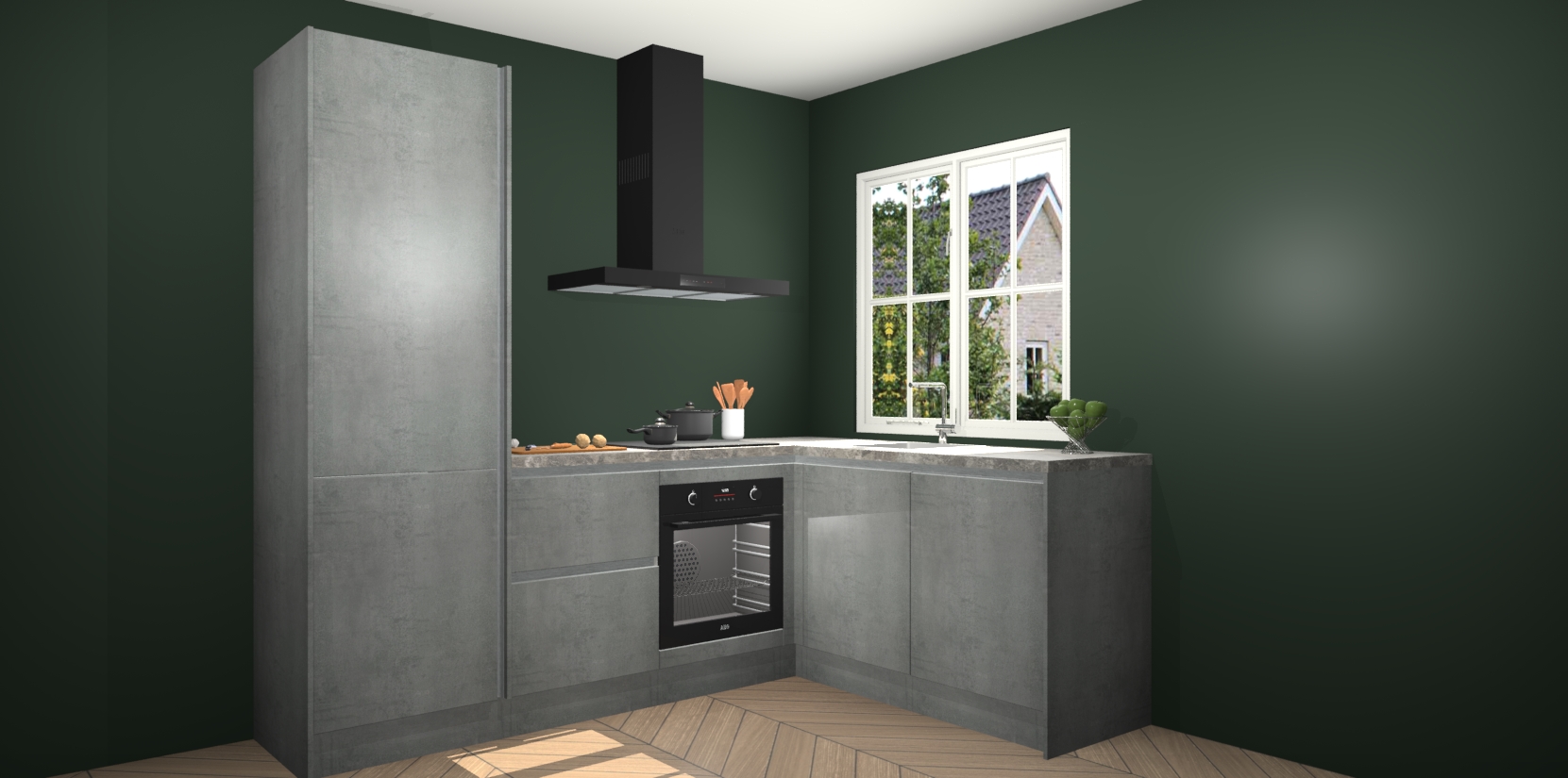 De Beton Parelgrijs greeploze keuken Linz is de perfecte keuze voor uw nieuwe moderne en tijdloze keuken. Ga voor moderne en tijdloze elegantie in uw keuken. De prachtige hoekkeuken biedt een verfrissende kijk op de manier waarop we ons vertrouwde keukenontwerp kunnen aanpassen in een nieuwe stijl.  Één blik om alles te zien: zo mooi dat het bijna magisch lijkt.