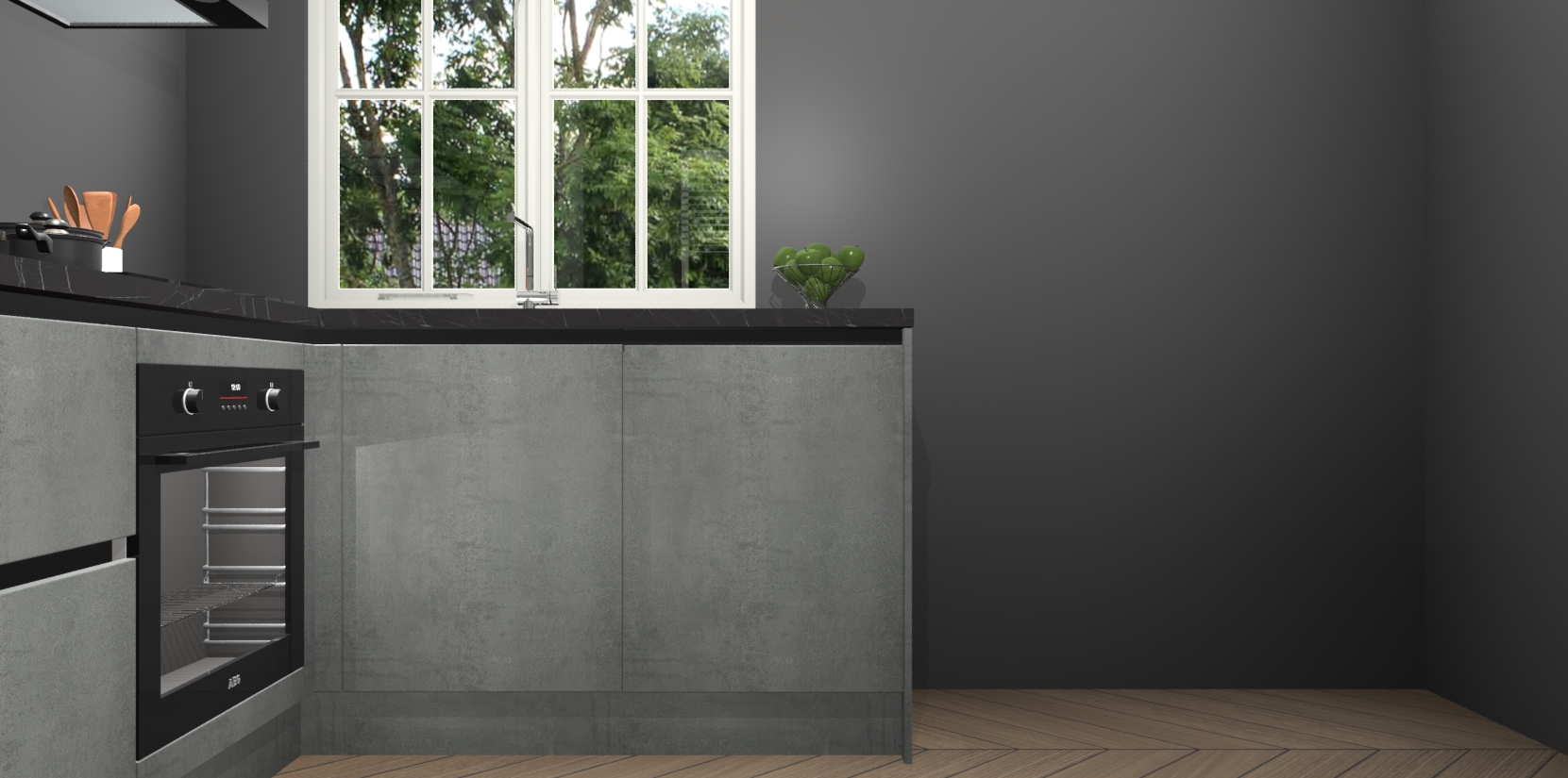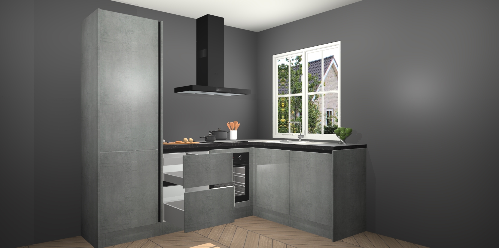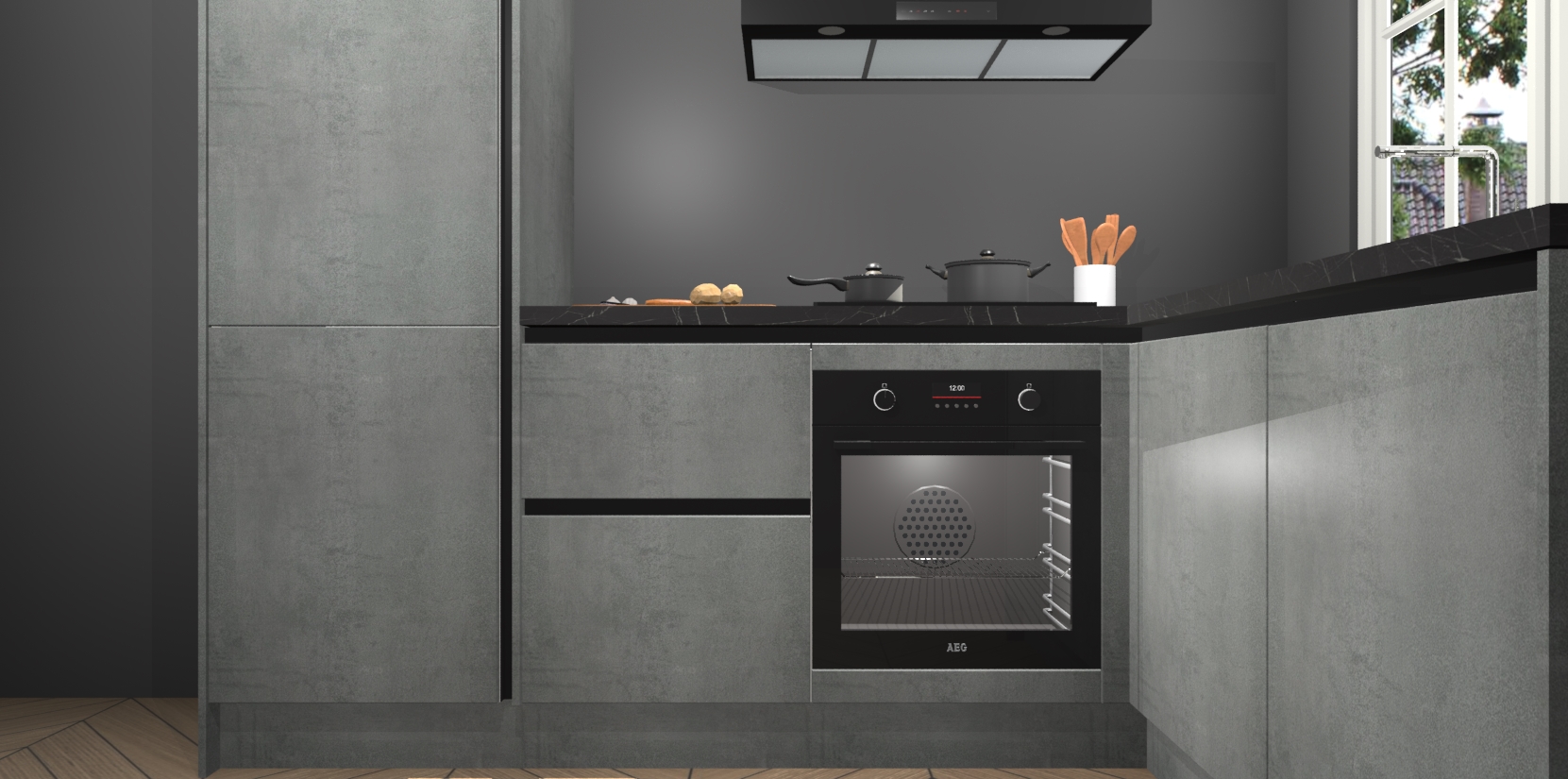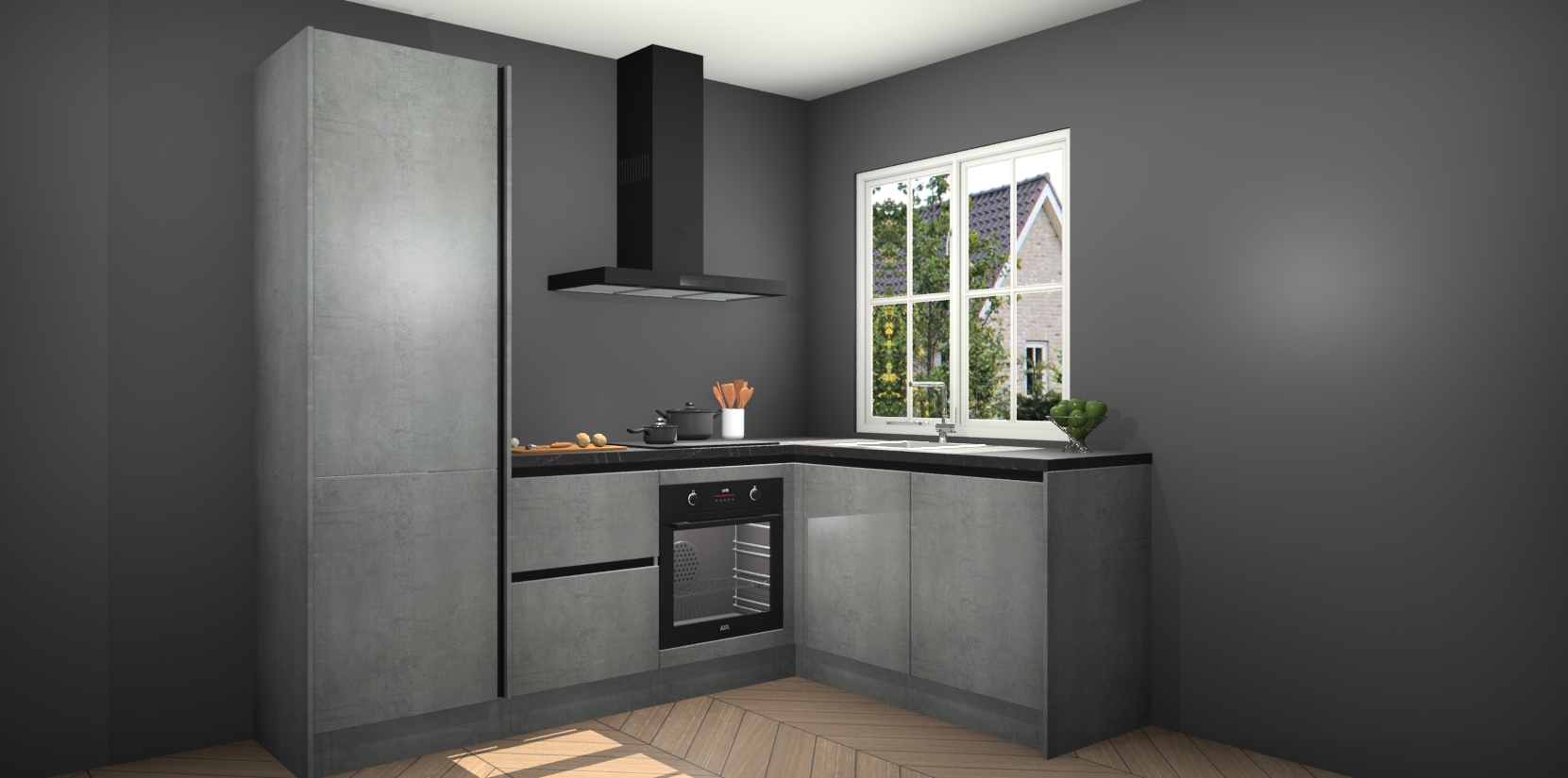 De Beton Parelgrijs greeploze keuken Linz is de perfecte keuze voor uw nieuwe moderne en tijdloze keuken. Ga voor moderne en tijdloze elegantie in uw keuken. De prachtige hoekkeuken biedt een verfrissende kijk op de manier waarop we ons vertrouwde keukenontwerp kunnen aanpassen in een nieuwe stijl. Één blik om alles te zien: zo mooi dat het bijna magisch lijkt.
