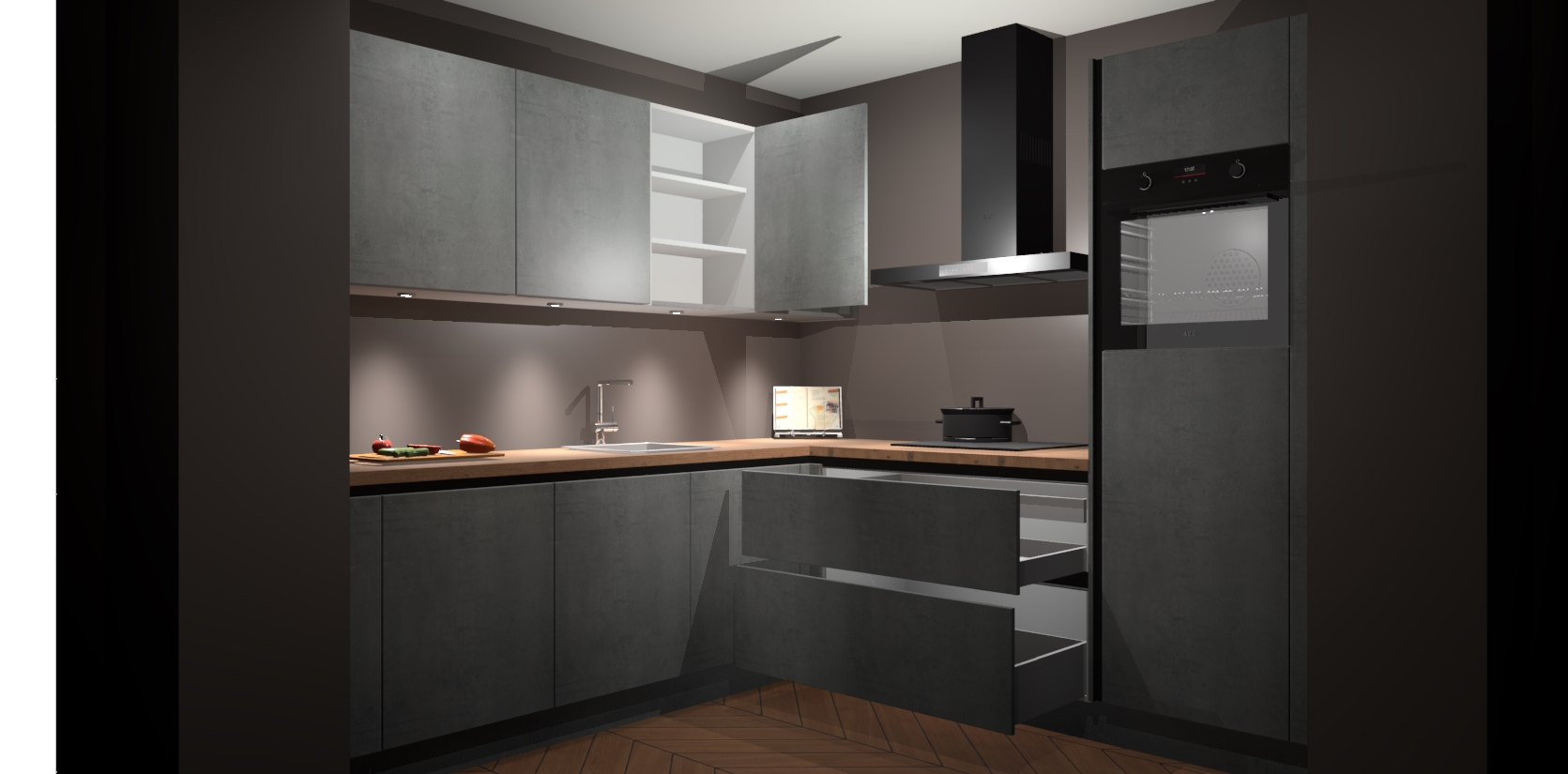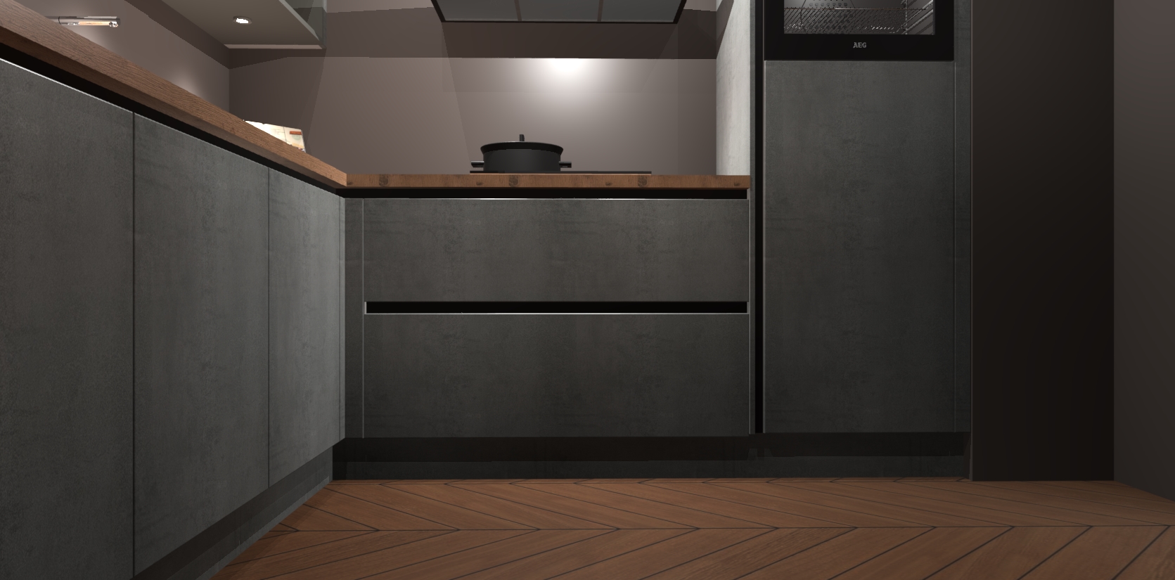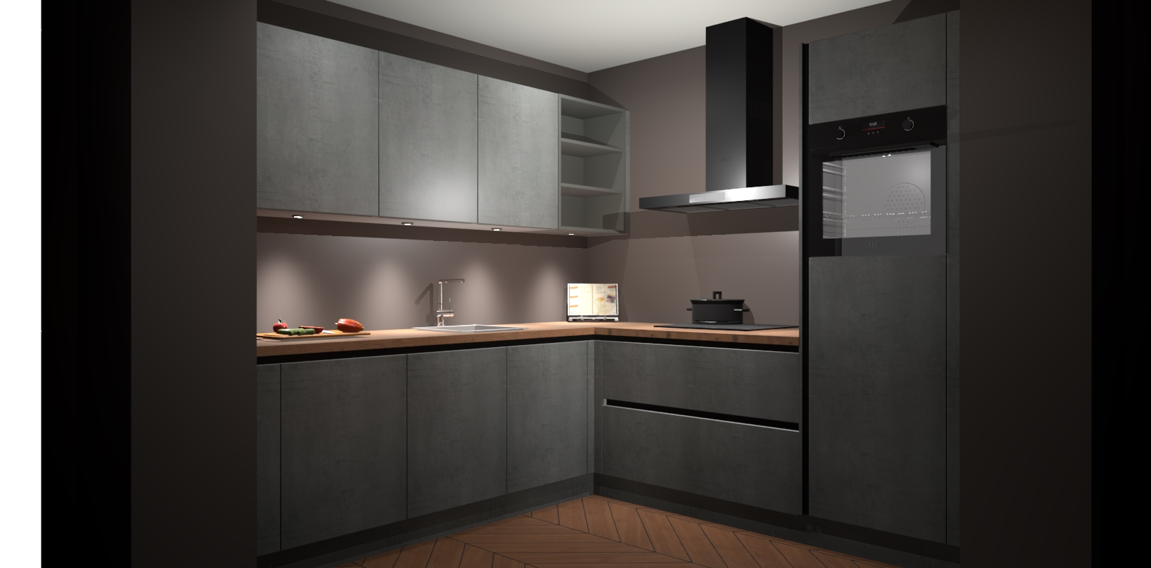 Met een modern, tijdloos design en ruime opslagruimte, zult u zich in no-time thuis voelen in uw nieuwe keuken. Uw leven wordt eenvoudiger met de soft-close deuren die voor het ultieme stille comfort zorgen - geen geluid dat u stoort terwijl u kookt. Ook is de keuken voorzien van 5 ingebouwde apparaten: een oven, inductie kookplaat, afzuigkap, vaatwasser en koelkast. Deze kunnen gemakkelijk na bestelling worden bijgewerkt naar AEG - waardoor uw luxe ervaring compleet is.