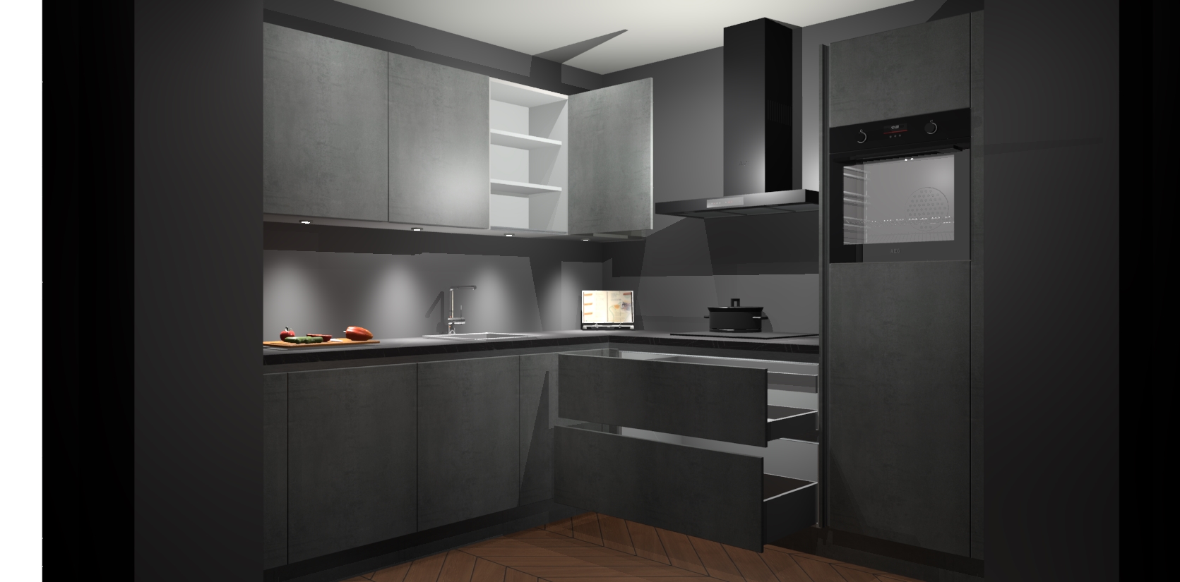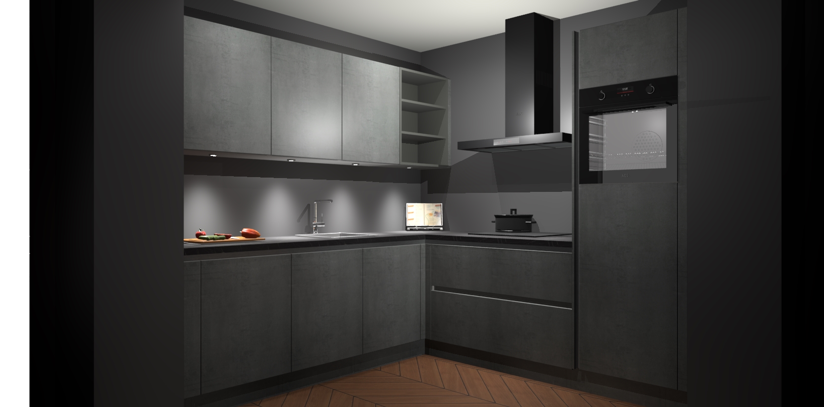 Met een modern, tijdloos design en ruime opslagruimte, zult u zich in no-time thuis voelen in uw nieuwe keuken. Uw leven wordt eenvoudiger met de soft-close deuren die voor het ultieme stille comfort zorgen - geen geluid dat u stoort terwijl u kookt. Ook is de keuken voorzien van 5 ingebouwde apparaten: een oven, inductie kookplaat, afzuigkap, vaatwasser en koelkast. Deze kunnen gemakkelijk na bestelling worden bijgewerkt naar AEG - waardoor uw luxe ervaring compleet is.