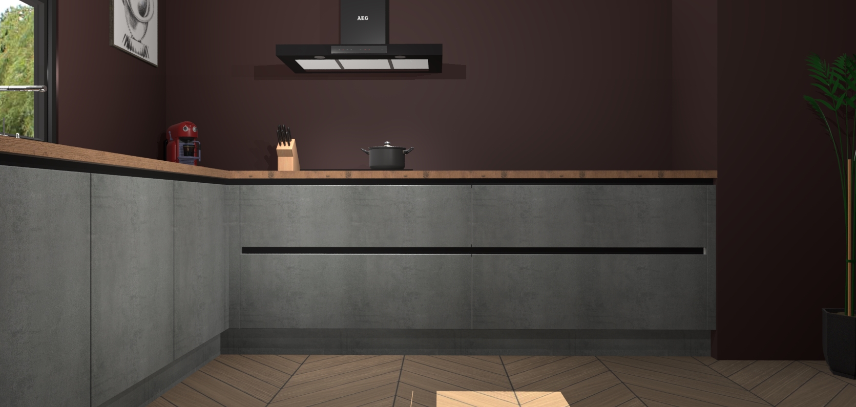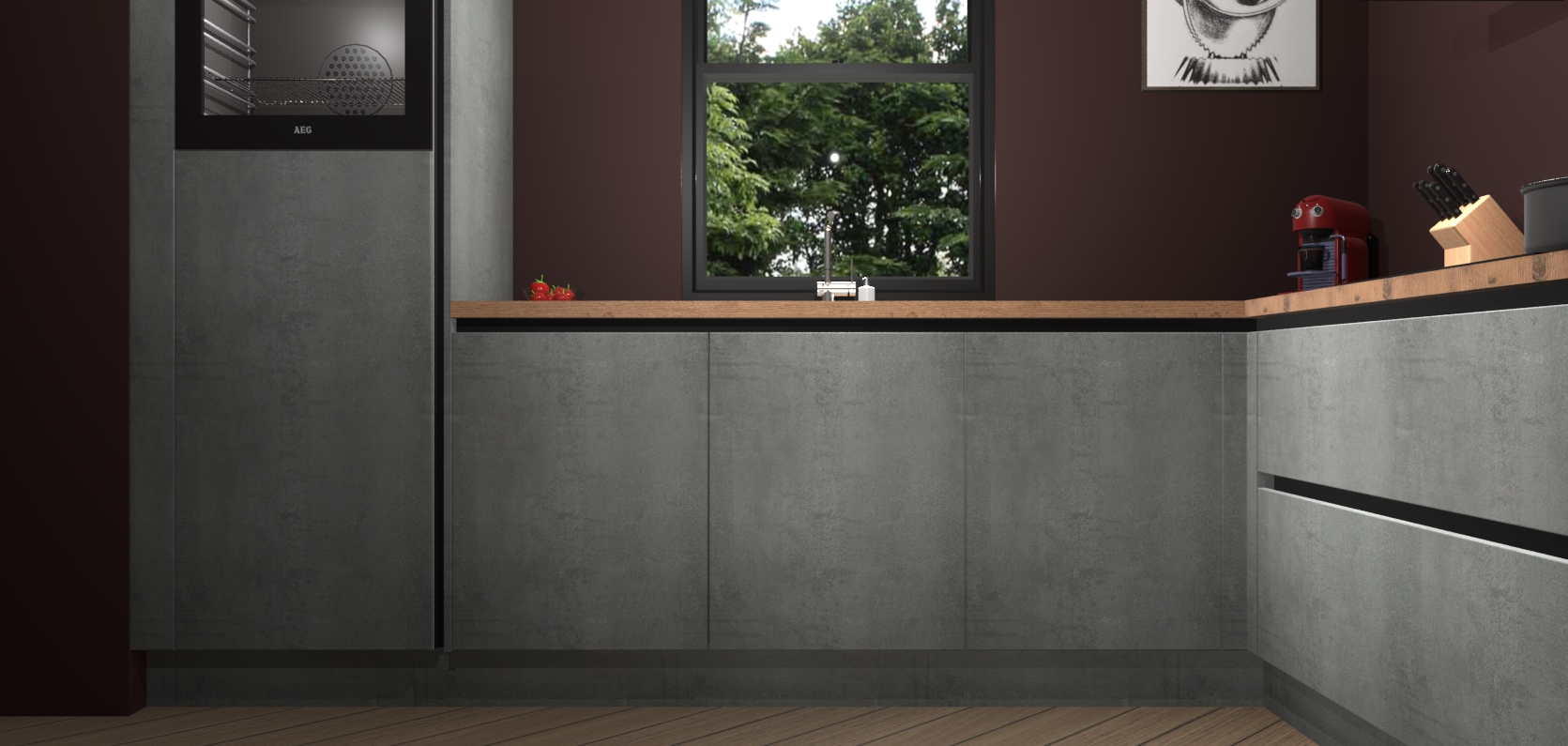 Welkom bij de Beton parelgrijs greeploze keuken Lublin. Deze prachtige keuken zal de komende jaren het middelpunt van de belangstelling in uw huis zijn. Uitgerust met vijf inbouwapparaten komt u nooit kookgereedschap tekort. Bovendien geeft de warme houtlook elke ruimte een uitnodigende en tijdloze uitstraling.
