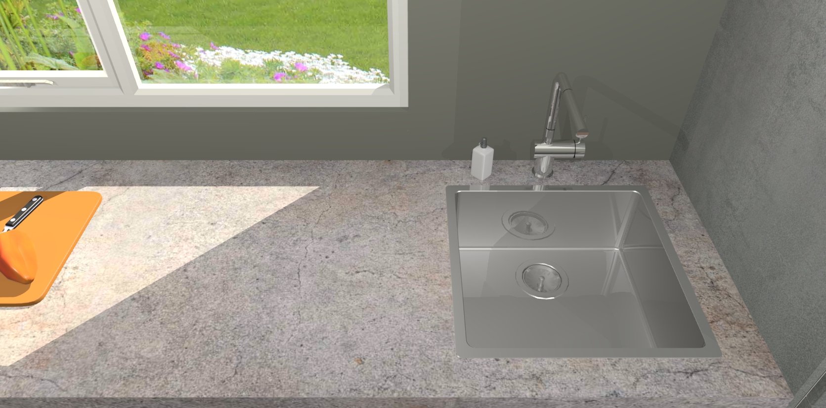 - De spoelbak is nog niet in gevreesd. Dit dient tijdens het werk gedaan te worden
